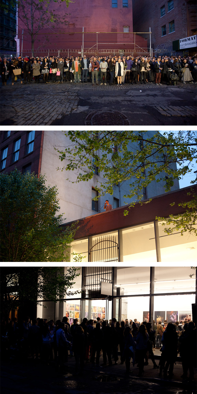 A double exhibition of new work, Grids & Animals, from photographer Ryan McGinley opened on Wednesday night at Team Gallery in SoHo. Grids, a series of photographs taken at music festivals, will be on display at 47 Wooster Street. Animals, photos of nude models and live animals, will be exhibited at 83 Grand Street. Both shows run from May 2nd to June 2nd 2012.