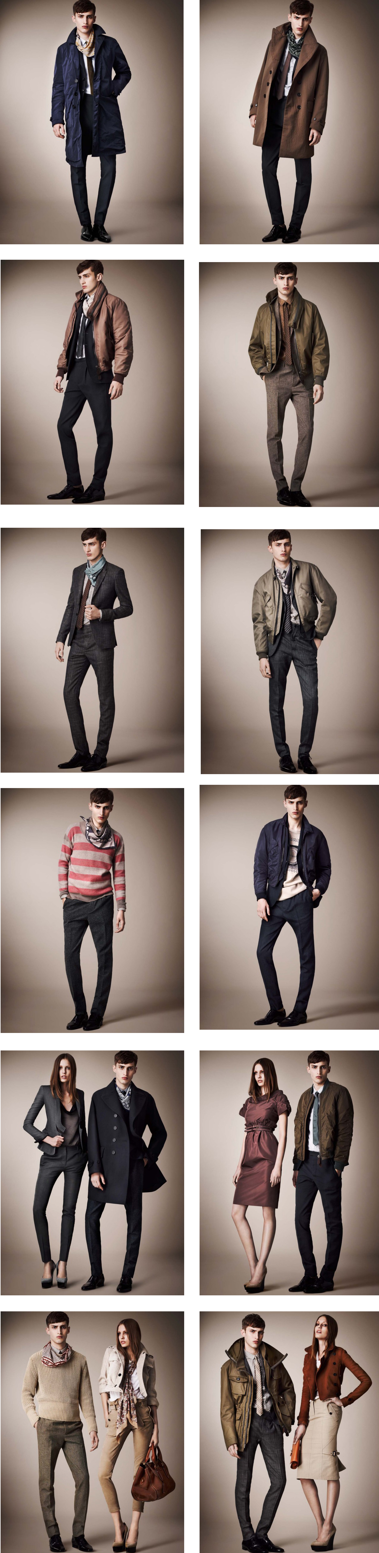 Burberry Prorsum Resort 2013 is decidedly more sober than last years playful tribal print and raffia laden collection. The colors this season have shifted to blues and grays with green and brown accents.