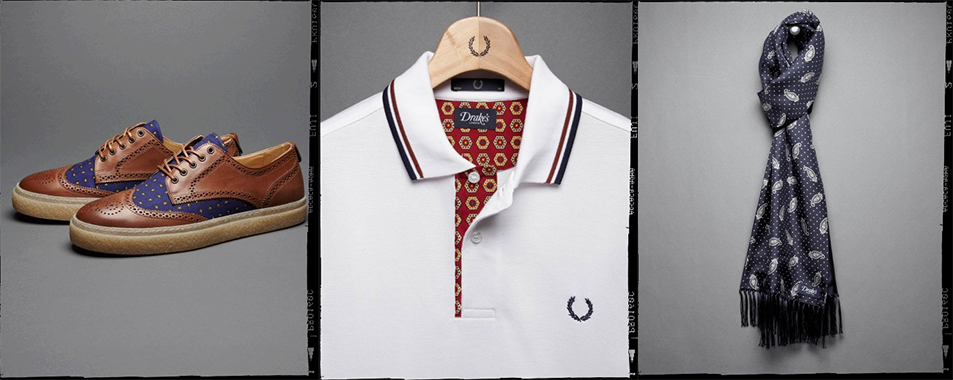 The collaboration sees two classic British brands join forces to create a measured and sophisticated collection of Fred Perry pieces, complemented by Drake’s signature archive prints. Staying true to heritage, styles are experimental, but not radical. Drake’s Managing Director Michael Hill captured the collaboration perfectly as he enthused: ‘it’s about evolution of design, not revolution’.