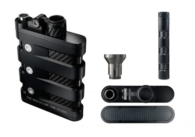 Traditional hip flasks are contoured to match the curve of your hip or thigh. Traditional hip flasks are made of stainless steel, silver or pewter. Traditional hip flasks are designed to help you maintain a certain level of discretion. The Flask from The Macallan is not a traditional flask; it’s a statement, a showpiece with complete utility. Made with carbon fiber and aerospace-grade aluminum, The Flask has been designed to be absurdly robust while enhancing the aroma and taste of The Macallan’s award-winning Scotch whiskey.