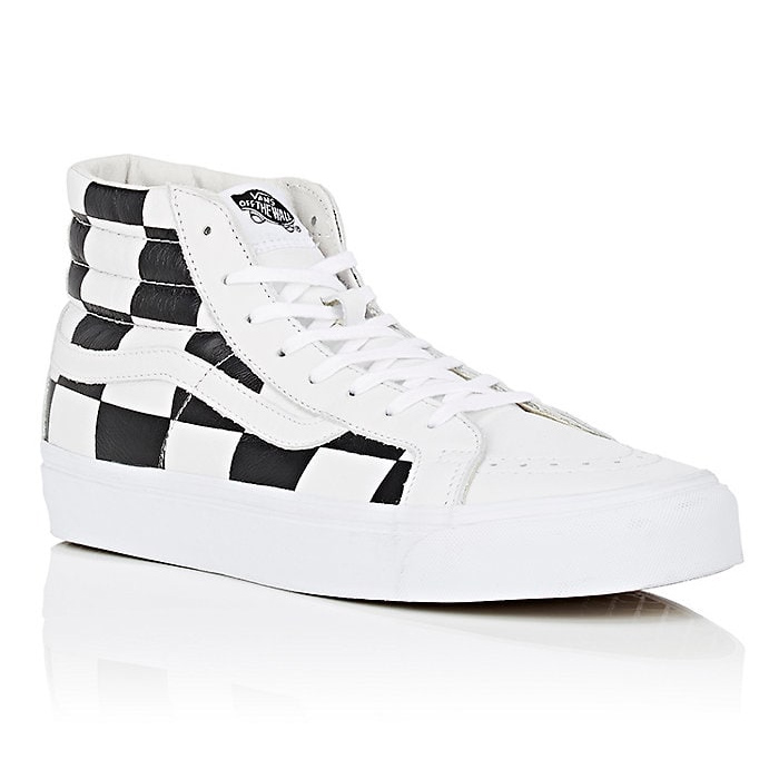 Barneys New York Sole Series is back with three new designs from Vans. This is the fifth BNY Sole Series collaboration with the Southern California brand and the second time they have re-imagined the iconic checkerboard pattern. This time the Barneys design team reworked the Sk8-Hi, Authenitc LX low-tops and the Slip-On in high-quality leather with an exaggerated checkerboard pattern. “For these exclusives, we playfully enlarged the black and white checks to 9 times the size and then printed the pattern onto leather” says Senior Buyer Chris Pepe.