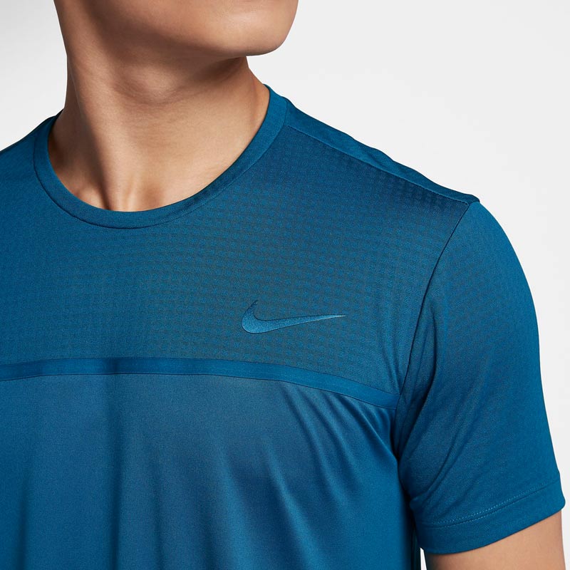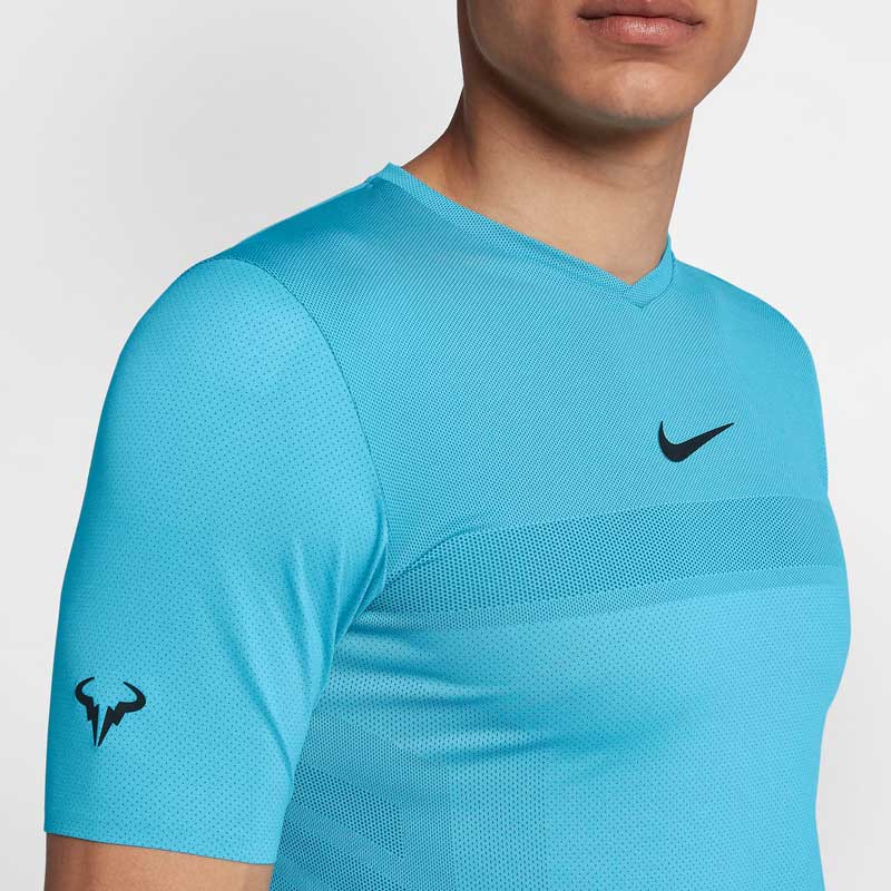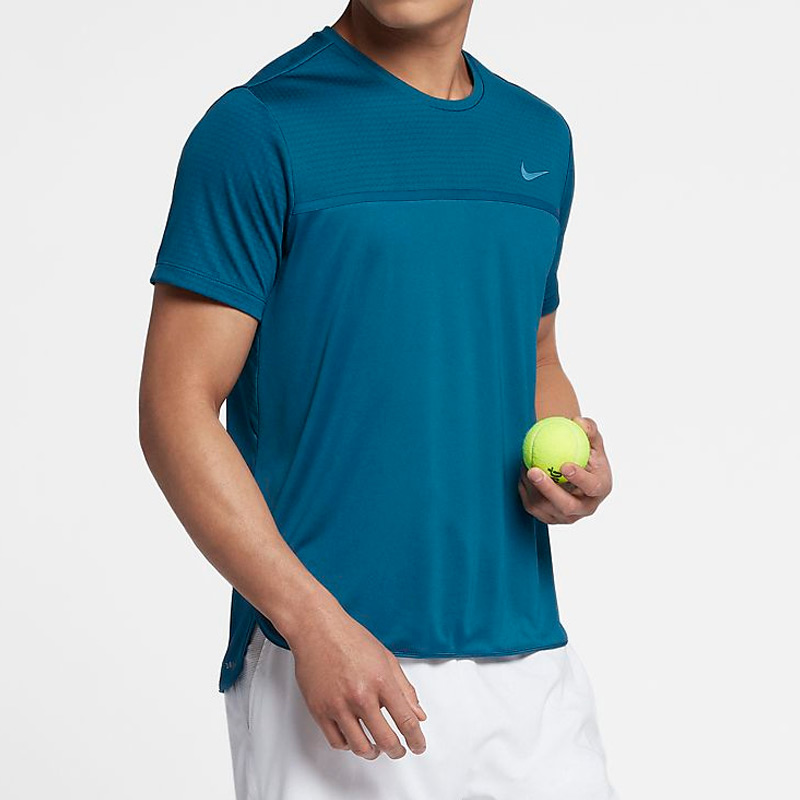 The 2018 NikeCourt Paris Tennis Collection aims to balance the elegance of Paris with the intense rough-and-tumble of clay court tennis. To create looks that stand out against the burnt orange clay of Roland-Garros Nike designers started with a full palette, eliminating whatever was getting lost before settling on a a series of bold blues. Designers added dimension to the colors using rich textures while making sure to supply players with tough, high-performance apparel and footwear.