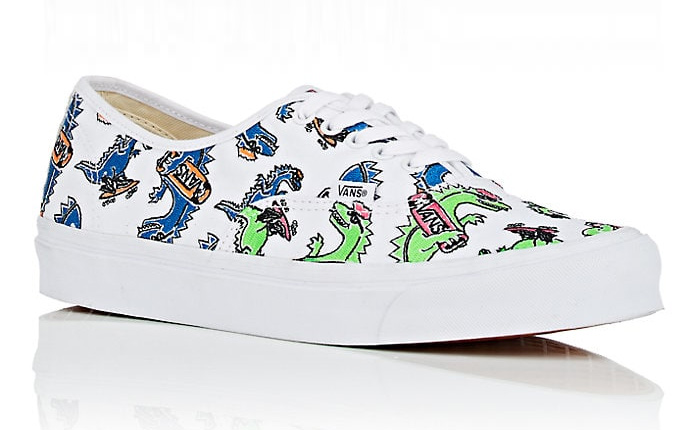 The Vanosaur lives. Barneys is bringing back the Vans Vanosaur for a limited-edition BNY Sole Series exclusive. After capsules incorporating basket weave designs and an exaggerated version of the classic checkerboard print, the Barneys team worked with Vans to revive a vintage pack first used in the 1980s. While the original Vanosaur was printed on canvas, Barneys elevated the update with green and blue dinosaurs embroidered on premium canvas.