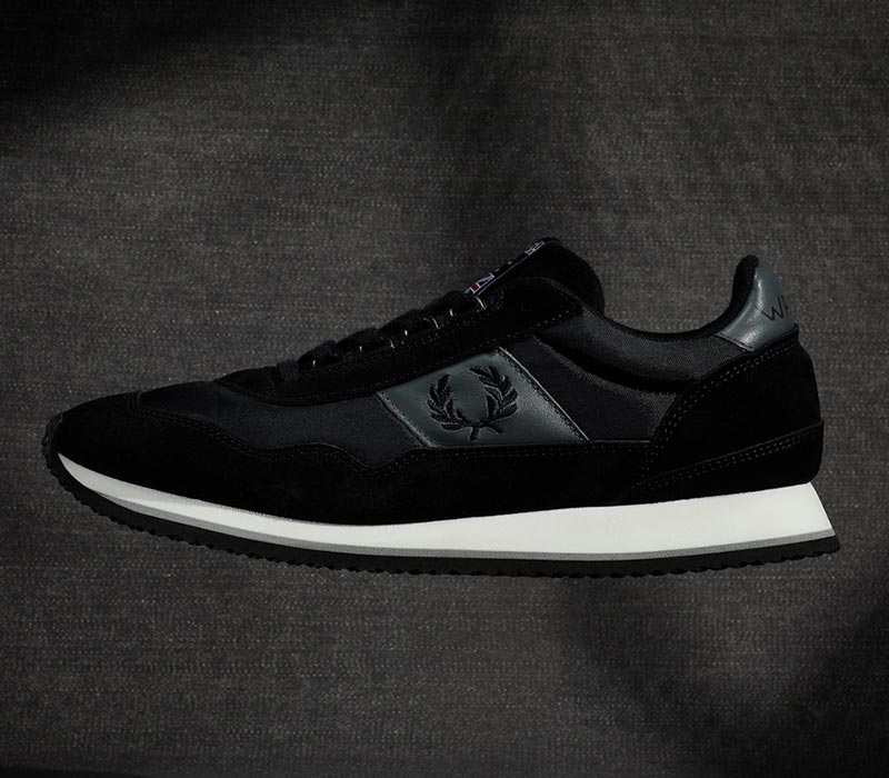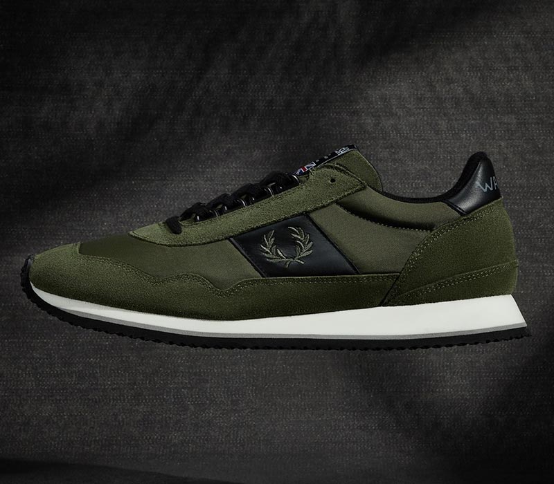 Fred Perry gives the Norman Walsh Ensign trainer – originally developed in 1981 for Boston Marathon competitors – a minimalist update. Made in Walsh’s original Bolton, England factory, the Fred Perry x Walsh trainer’s upper combines khaki, black or white suede and black or white leather panels with matching synthetic fabric and Laurel Wreath embroidery on the side.