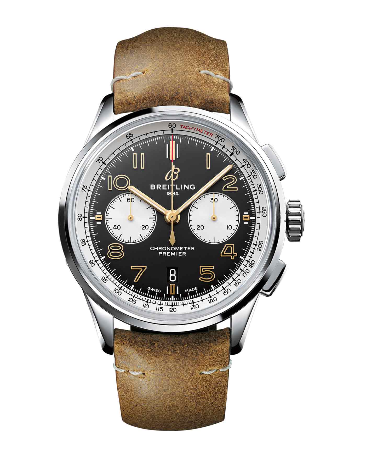 Designed to reflect the culture of innovation and adventure behind both brands, the Breitling Premier B01 Chronograph 42 Norton Edition celebrates the watchmakers partnership with one of Britain’s oldest motorcycle manufacturers. Norton’s distinctive logo is engraved on a plate on the left side of the 42-mm stainless steel case and on the transparent caseback. Inside the case, the black dial features two white sub-dials and gold tone Arabic numerals with matching hour and minute hands. Powered by the Breitling Manufacture Caliber 01 self-winding mechanical movement, the new chronometer is available with a raw brown leather strap ($8,500.00) or a stainless-steel bracelet ($8,800.00).