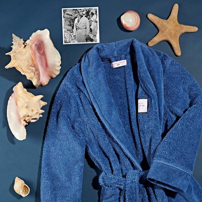 James Bond is a perennial source of sartorial inspiration that’s proven irresistible to designers. Last year Orlebar Brown released a limited edition collection of their Bulldog swim trunks with archival artwork from the Bond films Dr. No, Thunderball, You Only Live Twice and Live And Let Die. Following the success of the swim collection, the London-based label is expanding their collaboration with EON productions into a 15 piece capsule based on all the classic Bond films. Spanning five decades of James Bond style, the looks include Sean Connery’s terry polo from Dr. No and Thurnderball onsie, to George Lazenby’s tux shirt from On Her Majesty’s Secret Service and Roger Morre’s safari looks; the shirt from Diamond Are Forever and the jacket from The Man With the Golden Gun. Naturally, there are swim trunks/shorts to go with each film but the sportswear is the star of this show.