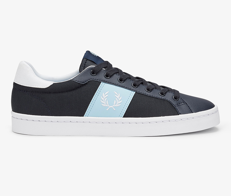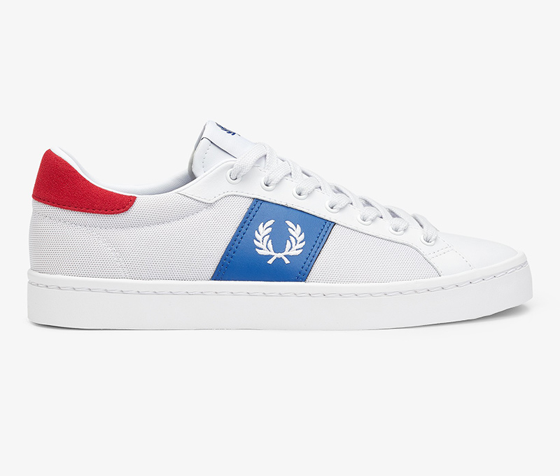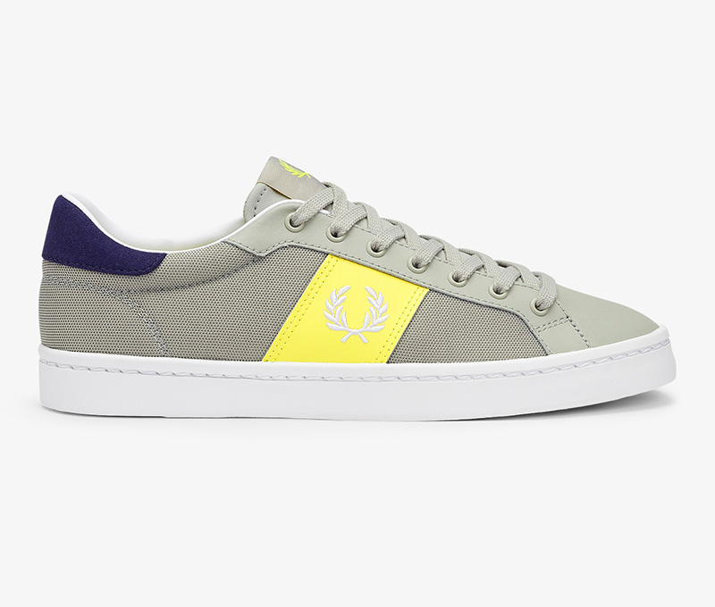 The professional grass-court tennis season is underway and the countdown to Wimbledon is on. As the world’s leading players fine-tune their grass-court skills before the start of The Championships on July 1, Fred Perry releases a new lawn tennis shoe called… The Lawn Tennis Shoe – naturally. A contemporary adaptation of Fred’s original tennis shoes, this version features a textured mesh upper with contrasting leather and suede trims and a chunky rubber sole for added durability. The three-color design frames a contrasting leather panel with Laurel Wreath embroidery and the terry towelling in-sock recalls Fred Perry’s first foray into tennis-wear: the trusty sweatband.