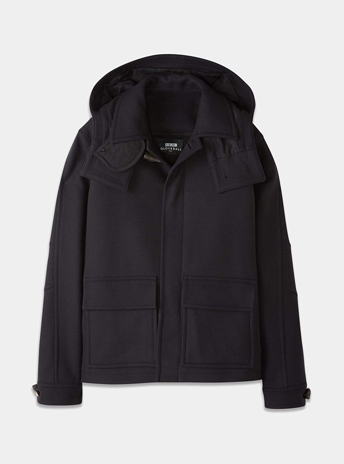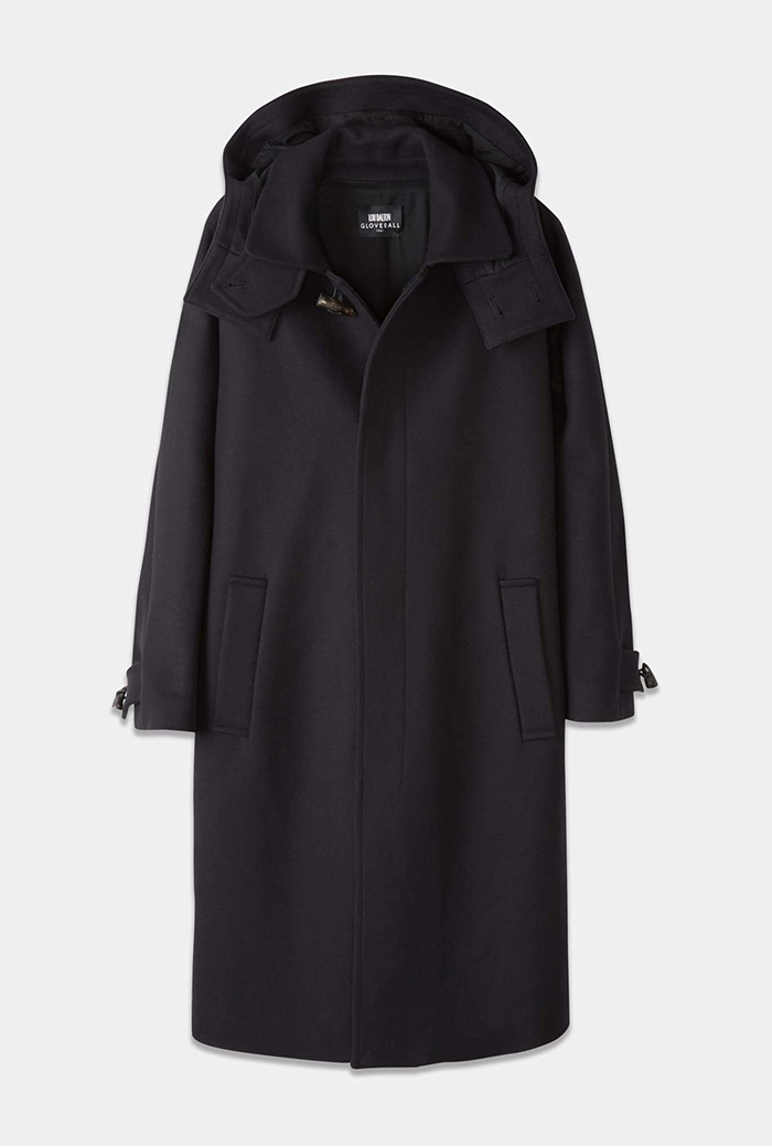 The Lou Dalton X Gloverall Hooded Overcoat ($897.00) elevates the traditional the duffle coat with cashmere wool fabric and a slouchy modern fit ideal for winter layering. Fully lined in cotton, the coat has deep welt pockets and a detachable hood which can be buttoned up for extra warmth. Buffalo horn style toggle fastenings added to the collar and cuffs are a throwback to Gloverall’s orignial coats.