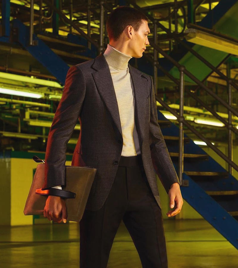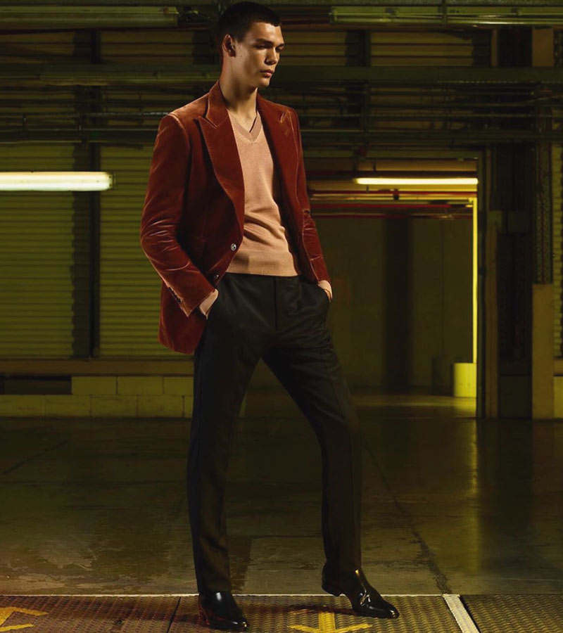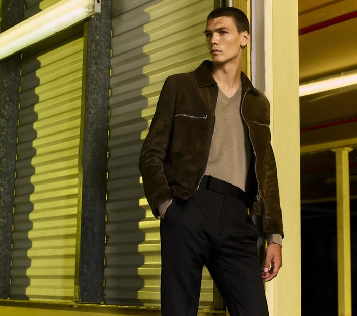 “Menswear is a detail-driven business,” says Mr Tom Ford, whose 29-piece capsule with Mr Porter launched today. The exclusive range offers Ford’s signature mix of immaculately tailored suits, plush cashmere sweaters, refined accessories and a satin-trimmed zebra-jacquard tuxedo jacket for good measure. For those looking for less precious – but still luxe – casual pieces there’s a slim fit biker jacket in supple black suede, a leather trimmed bomber jacket cut from thick shearling, a field jacket made in Italy from sage cotton-twill, and high-top sneakers made in Italy from velvety suede trimmed with contrasting leather side stripes. All in all, Ford keeps his sportswear classic and his suits streamlined – its the details that make his designs modern.