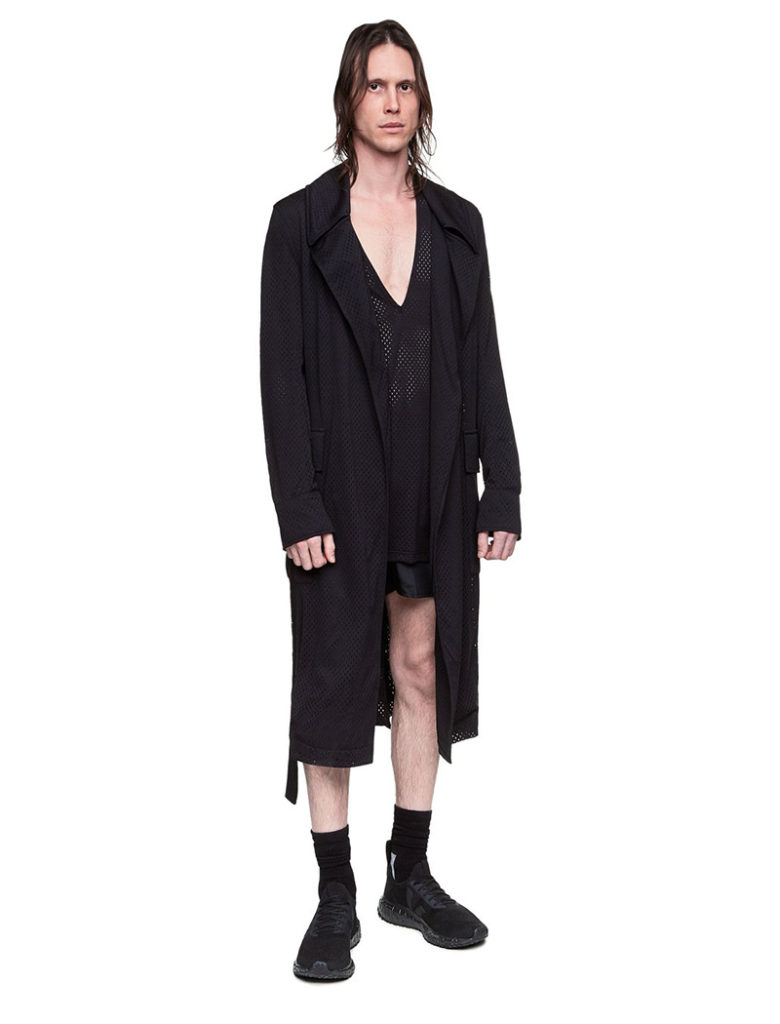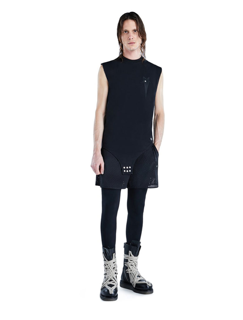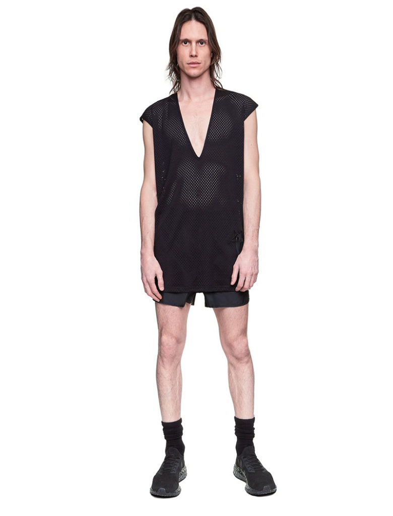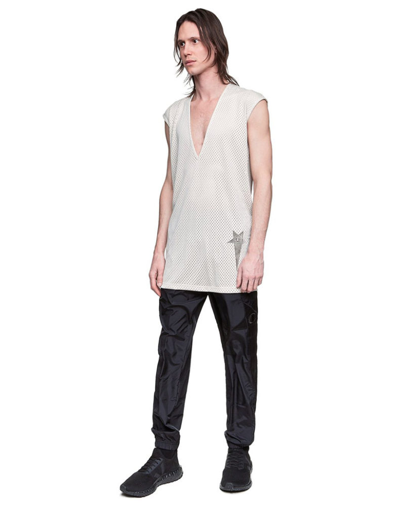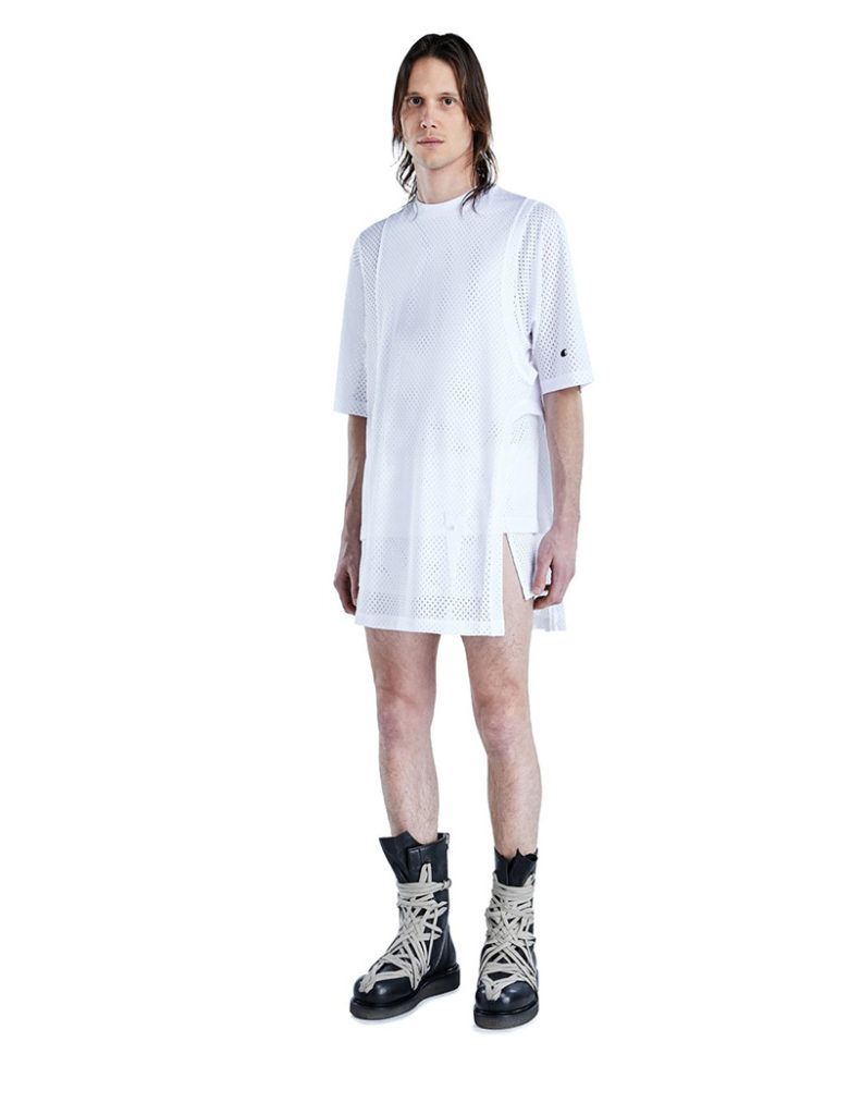 The Champion x Rick Owen Spring/Summer 2020 collaboration strikes a balance between masculine and feminine with a series of sharp contemporary silhouettes in the designers signature palette of black, white and grey. Key pieces include a below-the-knee mesh trench coat, a long mesh Toga T-shirt with a cape-like panel that is longer in the front, a lightweight mesh T-shirt with a deep V neck, and oversized cotton blend hoodies – all with the co-branded Champion x Rick Owens pentagram embroidery.
