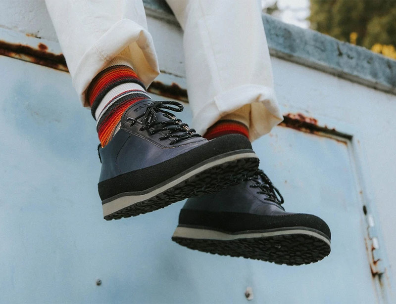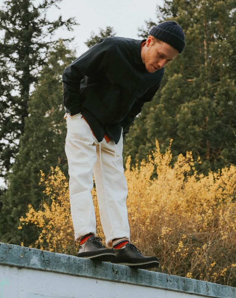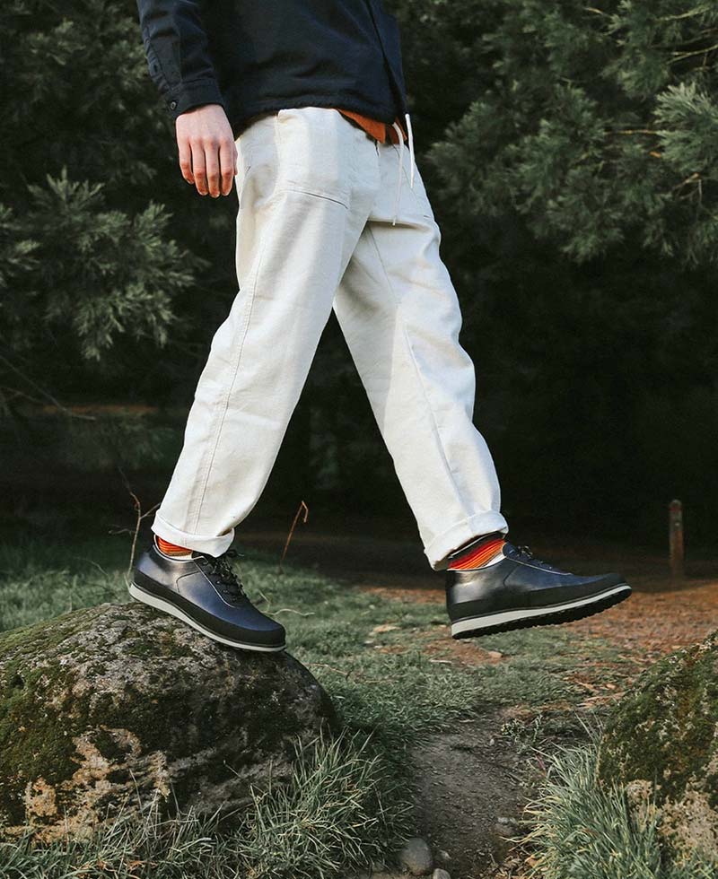 Finnish shoemaker Tarvas specializes in rugged, water repellent hikers designed to seamlessly take you from wooded trails to the city streets. Tarvas shoes are finished with a wrap-around mudguard that provides provides 360˚ protection in all weather conditions. Tanner Goods crafted an exclusive version of the Tarvas Explorer with a 5oz Navy Harness leather upper and notched rubber soles. Each pair is constructed with EU-sourced components and hand finished in Helsinki.