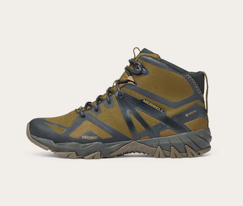 The new Filson x Merrell MQM Trail Runner combines all the best features of Merrell’s lightweight trail runners and hikers with Filson-style abrasion-resistant ripstop uppers. A thin, waterproof GORE-TEX membrane and bonded seam construction insures breathable moisture protection, while Merrell’s Quantum Grip™ sole offers enhanced traction. This limited edition trail runner is designed for quick movement through rough terrain.