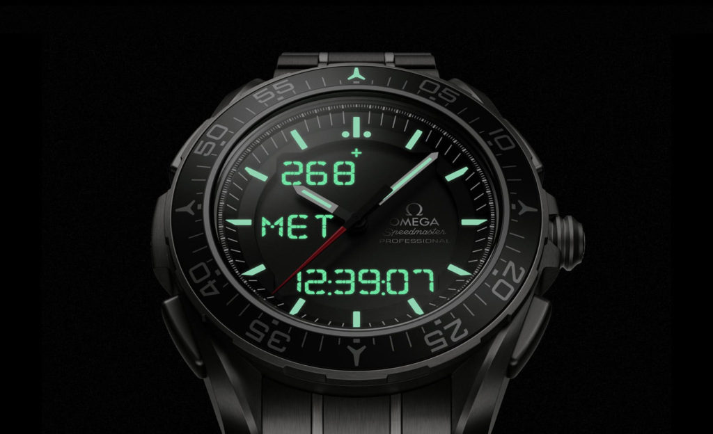 The latest iteration of this chronograph is the 2014 Speedmaster Skywalker X-33, a 45mm titanium watch powered by an in-house multi-functional quartz chronograph movement. Where Behnken’s X-33 had a velcro strap for easy adjustment during the mission, the Skywalker X-33 has a titanium folding clasp with “Omega Speedmaster Professional” engraved on the clasp cover. The black dial features both analogue and digital displays. White indexes and markers surround hour and minute hands coated with luminescent Super-LumiNova and a backlit LCD display. The hands can be disengaged to allow clear reading of the digital display. Not only can the Skywalker X-300 track Mission Elapsed Time (MET), it also comes with a dedicated iPad app – true progress.