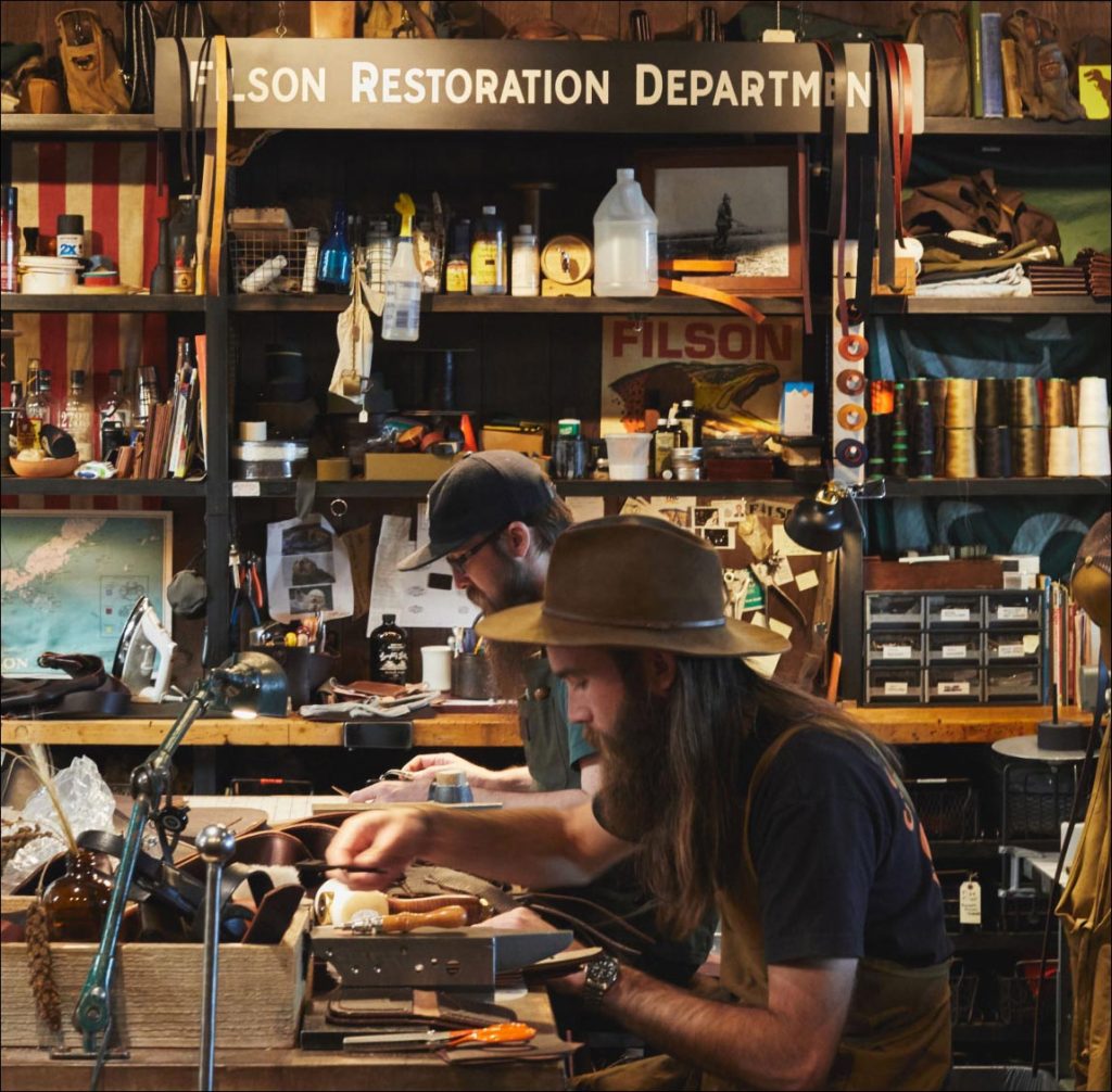 The restoration experts inside the Filson Workshop breath new life into well-used Filson luggage and bags. They darn, whipstitch, patch and reinforce frayed fabric and replace worn leather – whatever is required to forge new from old. Each bag that’s rejuvenated in the Filson Restoration Department is unique, with its own patina and character. Each is eligible for further maintenance or repairs. Because the FRD and Workshop bags are one-of-a-kind pieces, they cannot be returned and are non-refundable.