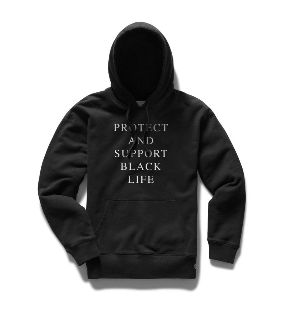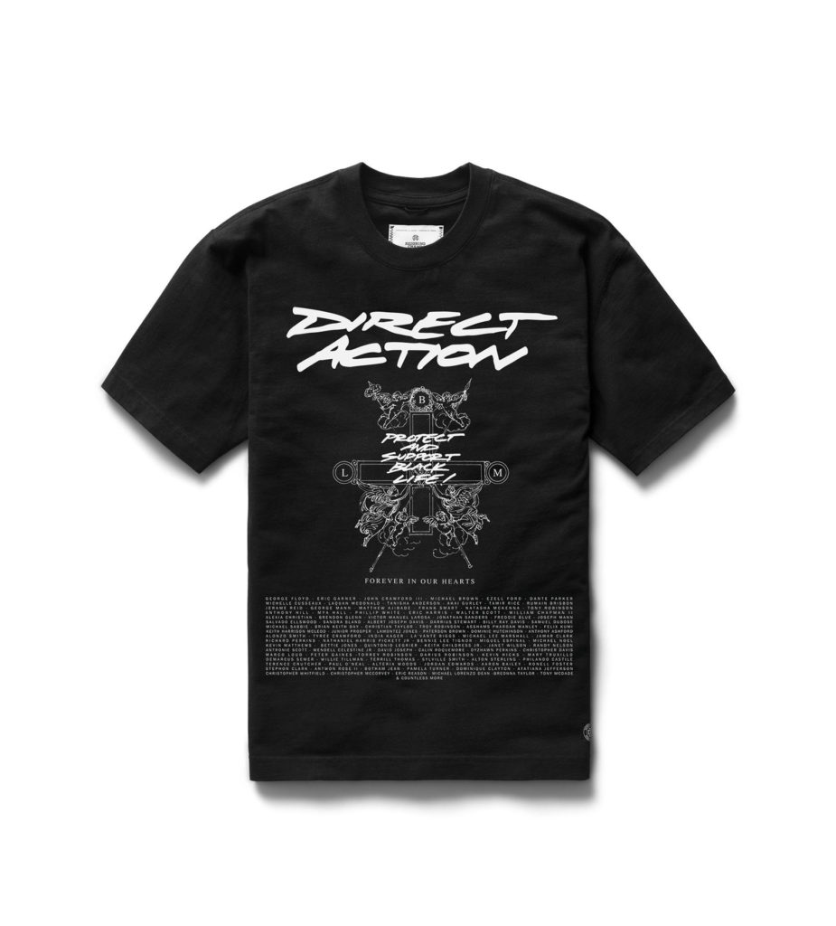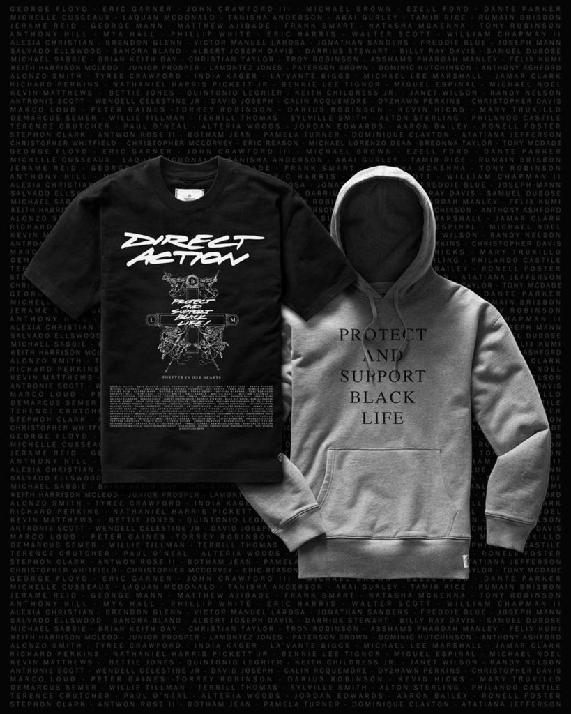 Reigning Champ didn’t waste any time putting its words into action. Two weeks after the murder of George Floyd and four days after founder Craig Atkinson released a statement pledging to increase support for “equality, empowerment and social justice for BIPOC populations” by supporting organizations fighting racial injustice, the brand is doing just that. 100% of the sales from the limited edition Direction Action capsule will be donated to the Equal Justice Initiative. The three piece line includes two hoodies and a T-shirt decorated with original artwork by Jide Osifeso & Joshua Vides created exclusively for the fund raiser.