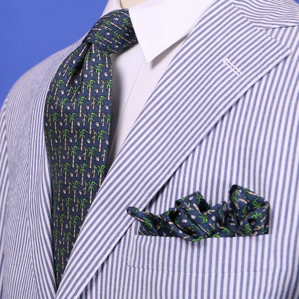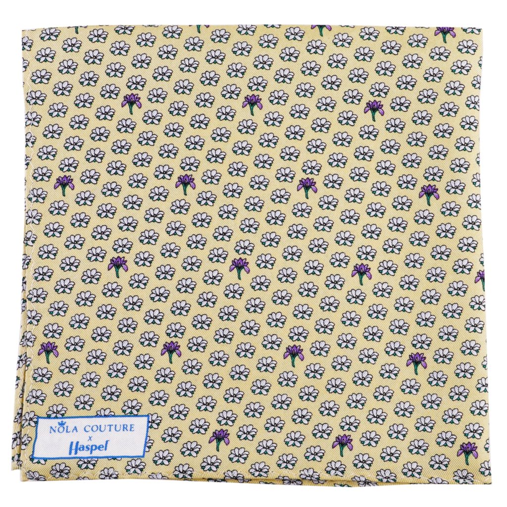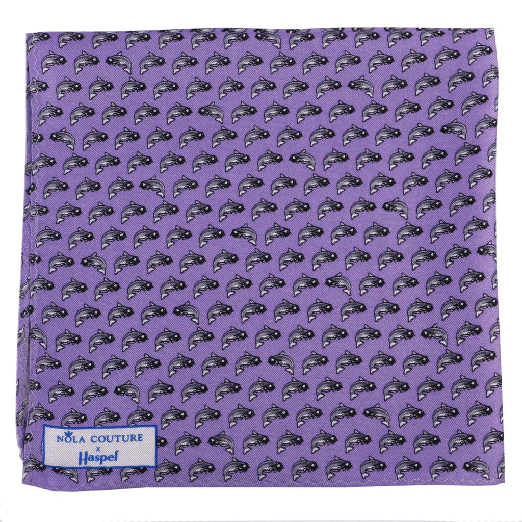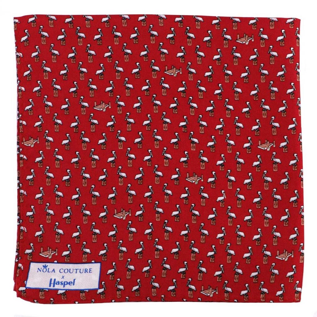Now, Haspel is teaming up with NOLA Couture, another New Orleans native, on a collection that celebrates the vibrant culture and whimsical style of Louisiana. The 18-piece Haspel x NOLA Couture capsule features silk ties, pocket squares and bow ties covered with images of sugarcane, strawberries, magnolias, catfish, pelicans and the Cajun Holy Trinity (aka onions, celery and bell peppers – the key ingredients in all Cajun dishes). Designed to coordinate with Haspel’s seersucker suits, the silks come in navy, light blue, pink, lavender, yellow and red.