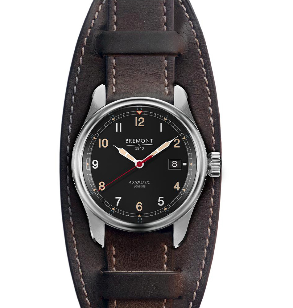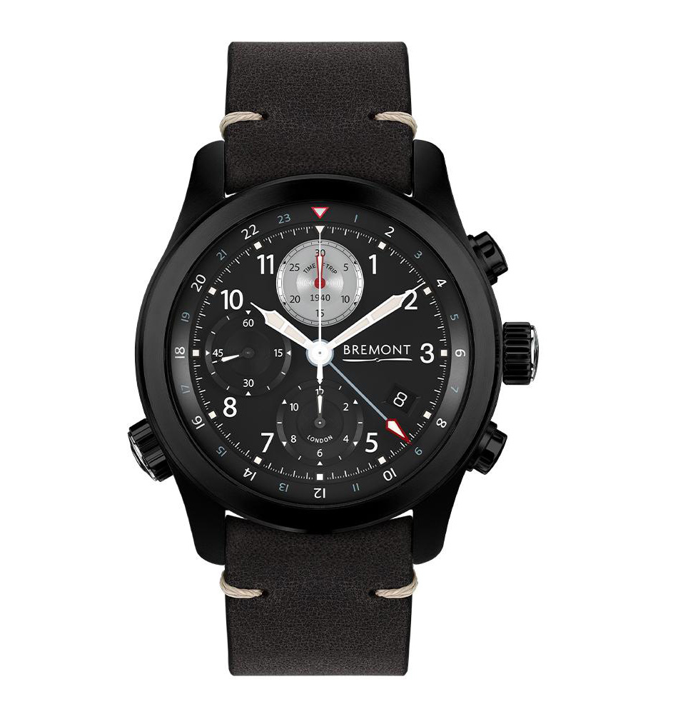 The dial design of the 43mm Bremont BOB Spitfire chronograph comes from the Smiths clocks mounted on the instrument panels of the Spitfires that flew during the Battle of Britain. The closed case back of each watch is stamped with the profile of the Supermarine Spitfire, the most widely produced and strategically important British single-seat fighter of World War II.