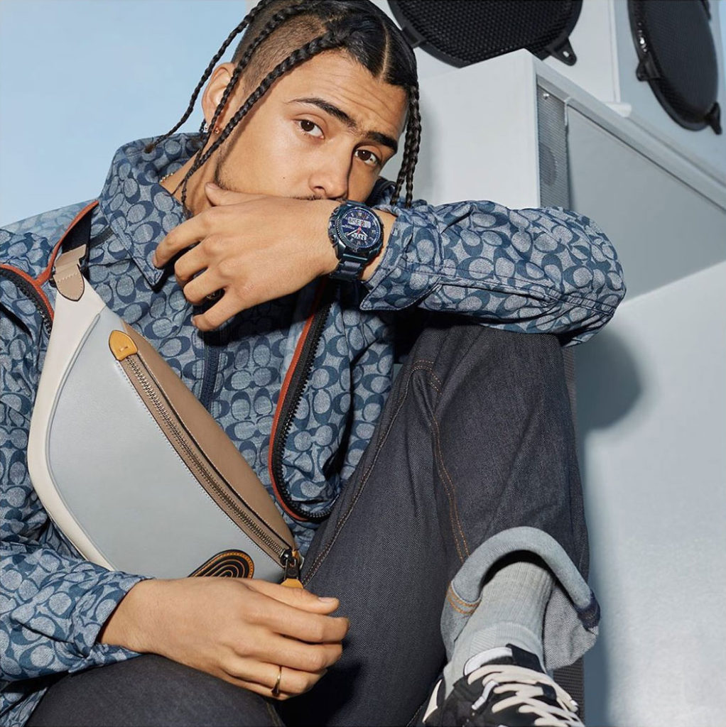 Coach is expanding its selection of fashion watches with the sporty C001 Collection. The diver-inspired quartz watches look the part with rugged straps, removable case guards and separate dials for seconds, minutes and hours elapsed. Designed and manufactured in partnership with licensee Movado Group, the eight-piece line includes four limited edition, numbered models. Up and coming singer/actor Quincy (Brown) fronts the promotional campaign shot by Alessandro Simonetti. As part of the C001 roll-out, Coach and the Movado Group made a donation to Feeding American – a network of food banks, pantries and meal programs that feed more than 40 million people each year.