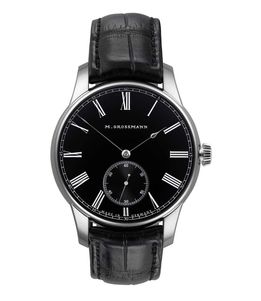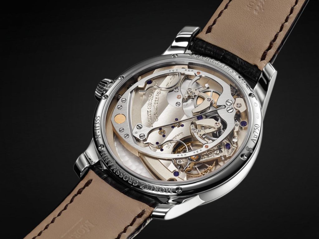 The new Moritz Grossmann Hamatic Vintage uses a unique self winding movement inspired by the traditional hammer mechanism in 19th century pocket watches. Available in a limited edition of 25 timepieces worldwide, the 41 mm white gold case features a transparent case-back that allows a clear view of the exquisitely finished calibre 106.0 automatic movement. The mechanisms design is so efficient that the slightest arm movement winds the watch. On the mirror-polished ‘black or’ dial, the ‘M. Grossmann’ logo from 1875 and needlelike hands – measuring a mere 0.1 mm wide – pay homage to pocket watches crafted in the 19th century by Karl Moritz Grossmann in his Glashütte atelier.