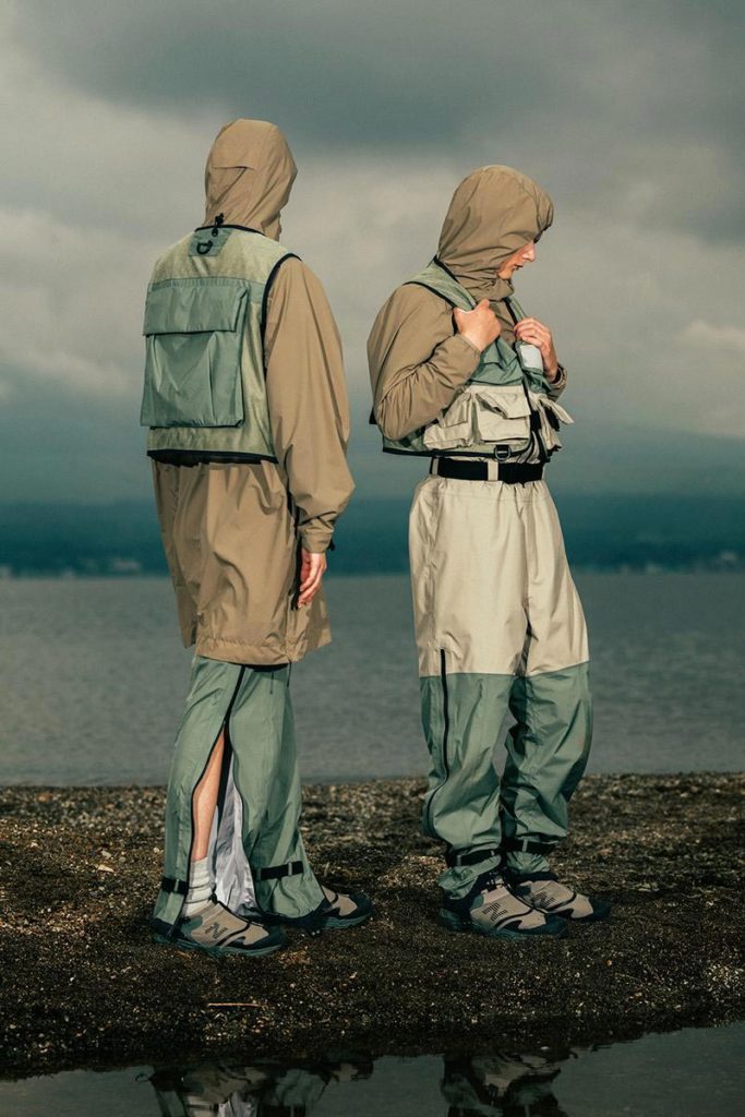 Snow Peak reunites with New Balance’s Tokyo Design Studio for a new collaboration inspired by fly-fishing gear. The Niobium Capsule turns waders, casting shirts and guide vests into utilitarian streetwear, cut from quick-drying performance fabrics embellished with zippers, straps and stash pockets. The name, Niobium, is a reference to a light gray metallic element used in alloys. The collections color scheme – slate, taupe, beige, black and sage – reflects this natural influence across apparel and footwear.