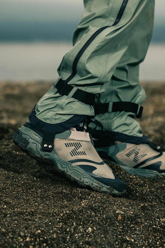 The collection introduces the Tokyo Design Studio x Snow Peak TDS Niobium Concept 1, a brand new silhouette based on high-performance wading boots. Designed by Snow Peak’s Lisa Yamai in collaboration with New Balance, the mid-top sneaker-boots have Cordura rip-stop uppers, Gore-Tex waterproof panels, ABZORB compression foam for cushioning through the midsole and a removable ankle collar.