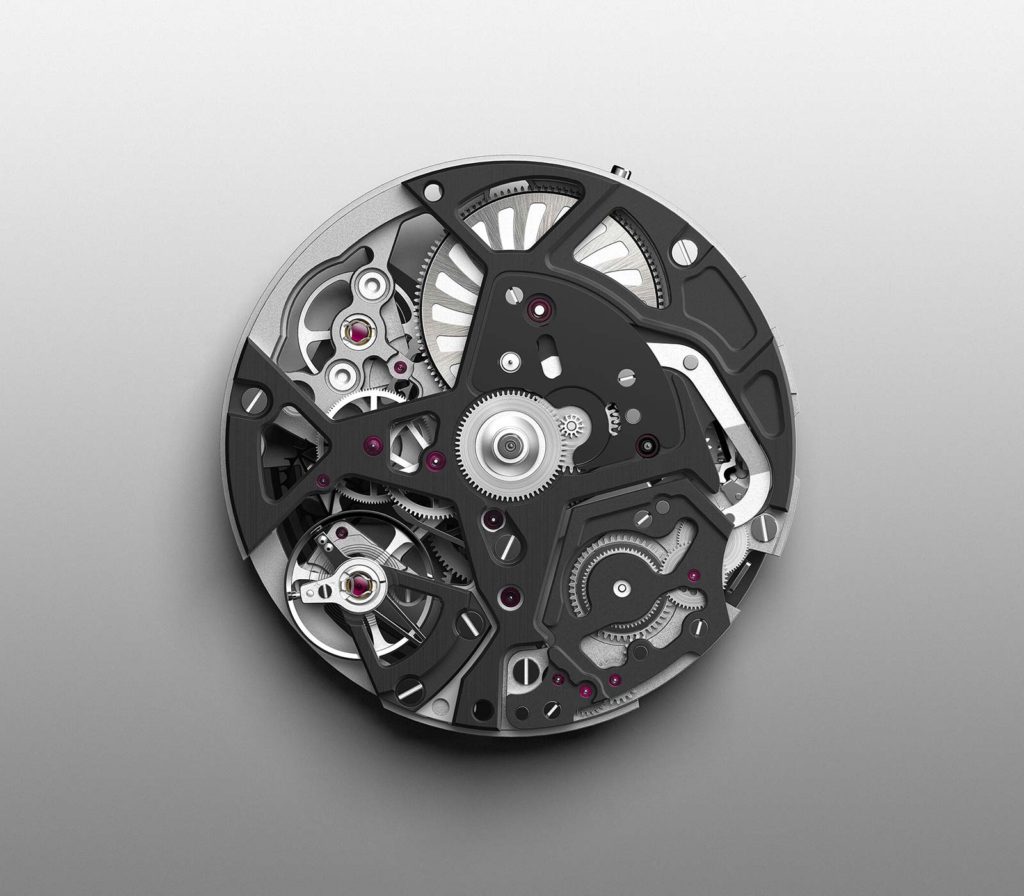 Zenith uses the Defy collection as a platform for cutting edge mechanical watchmaking, adding gravity defying gyroscopic mechanisms, double tourbillons and eye-catching movements. The latest addition to the line is a striking, monochromatic edition of the El Primero chronograph. The Defy El Primero 21 Black & White Edition features a 44mm matte black, faceted ceramic case and a white ceramic bezel. The usually colorful bridges and oscillating rotor of the 1/100th of a second chronograph movement are treated in a stark achromatic palette. The 30-minute counter at 3 o’clock, 60-second counter at 6 o’clock, and Chronograph power-reserve indication at 12 o’clock seemingly float above the blackened movement. As a finishing touch, a sporty black and white rubber strap completes the theme. The watch also comes with a second strap in textured black rubber.