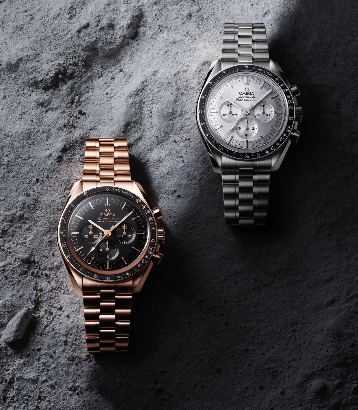 Omega will launch eight versions of the Moonwatch Master Chronometer, including the 18K Sedna Gold ($34,800) and 18K Canopus Gold ($45,300) styles available exclusively in Omega boutiques. See the collection at omegawatches.com.