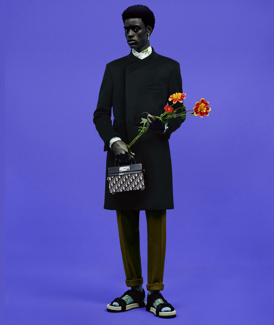 The Dior Men 2021 Collection is a testament to Artistic Director Kim Jones’ admiration for the work Ghana-born, Vienna-trained contemporary artist Amoako Boafo. Inspired by the graphic patterns and thick, gestural brushstrokes of Boafo’s portrait paintings, Jones translated the works into embroideries, intarsia knits and a jacquard print of paintbrush strokes. Photographer Rafael Pavarotti and art director Ronnie Cooke Newhouse capture the collaborations “vivid, near-surreal hues” modeled by Babacar N’doye, Samer Rahma and Jeremiah Berko Fordjour.