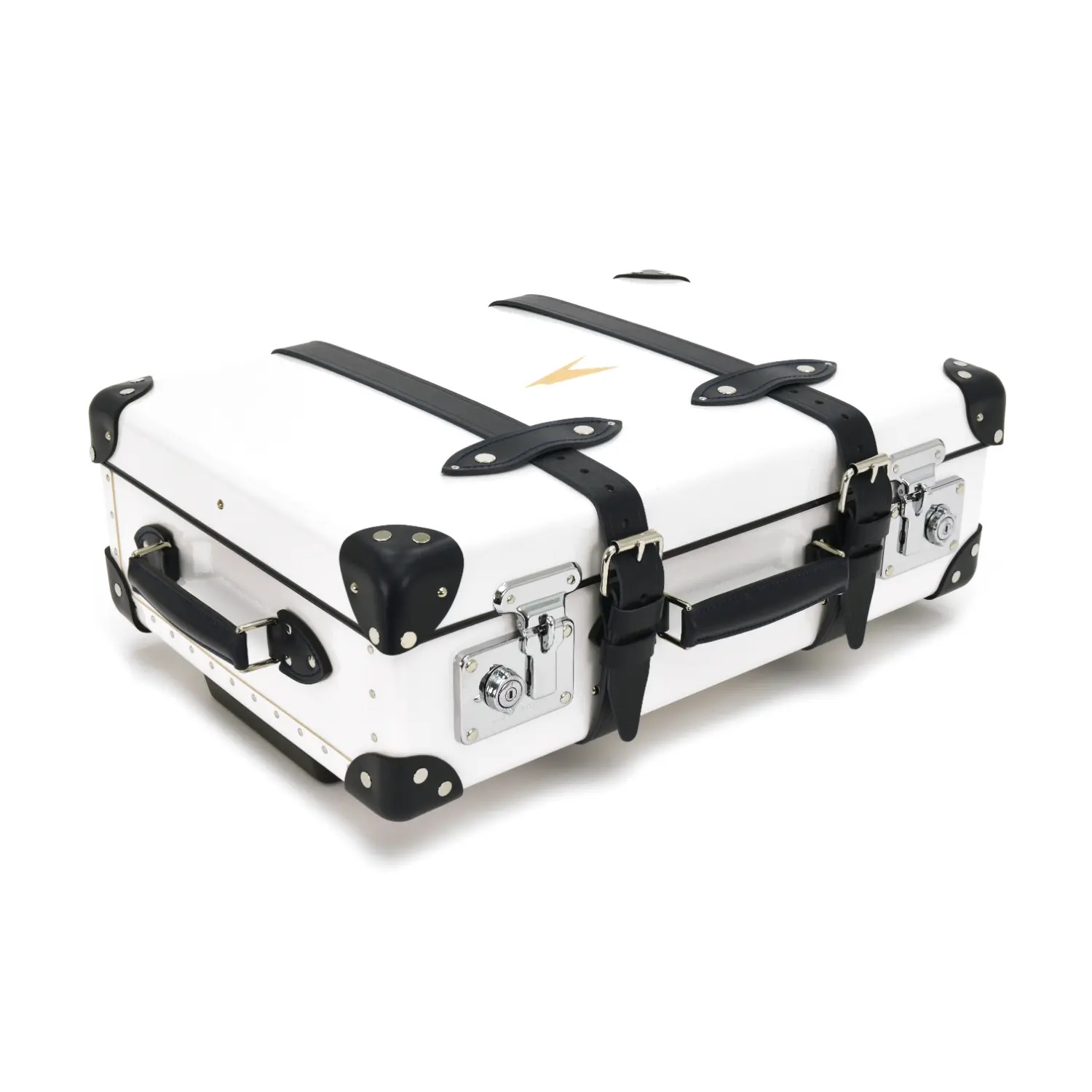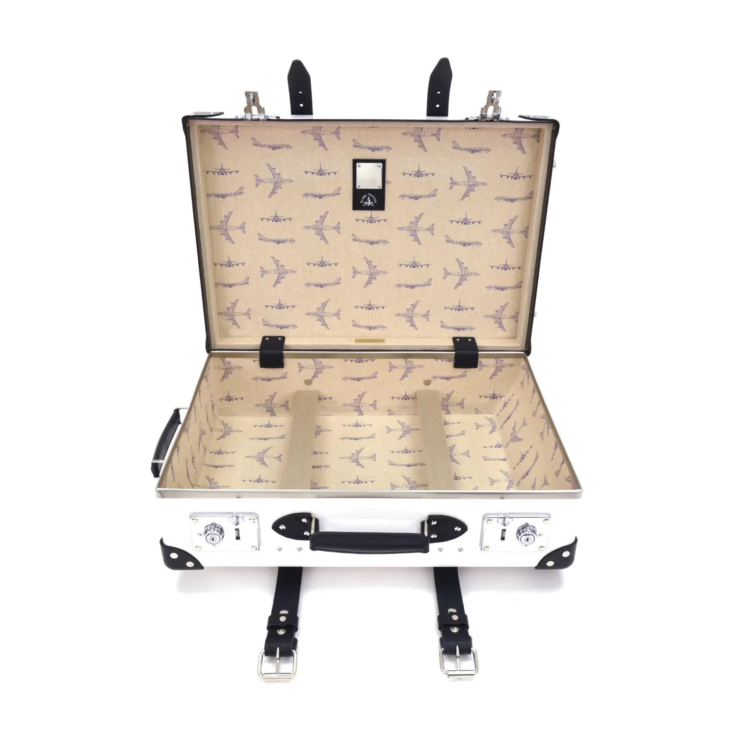 Globe-Trotter teamed up with British-Airways to commemorate the retirement of Boeing’s iconic 747, the original Jumbo Jet. Limited to just 150 cases, the Globe-Trotter x British Airways BOAC Speedbird Carry On is painted in the retro pearl and navy colors of the British Overseas Airways Corporation, the predecessor to British Airways. A hand-painted gold Speedbird insignia adorns the case exterior, while a fragment taken from a British Airways 747 decorates the interior of the lid.