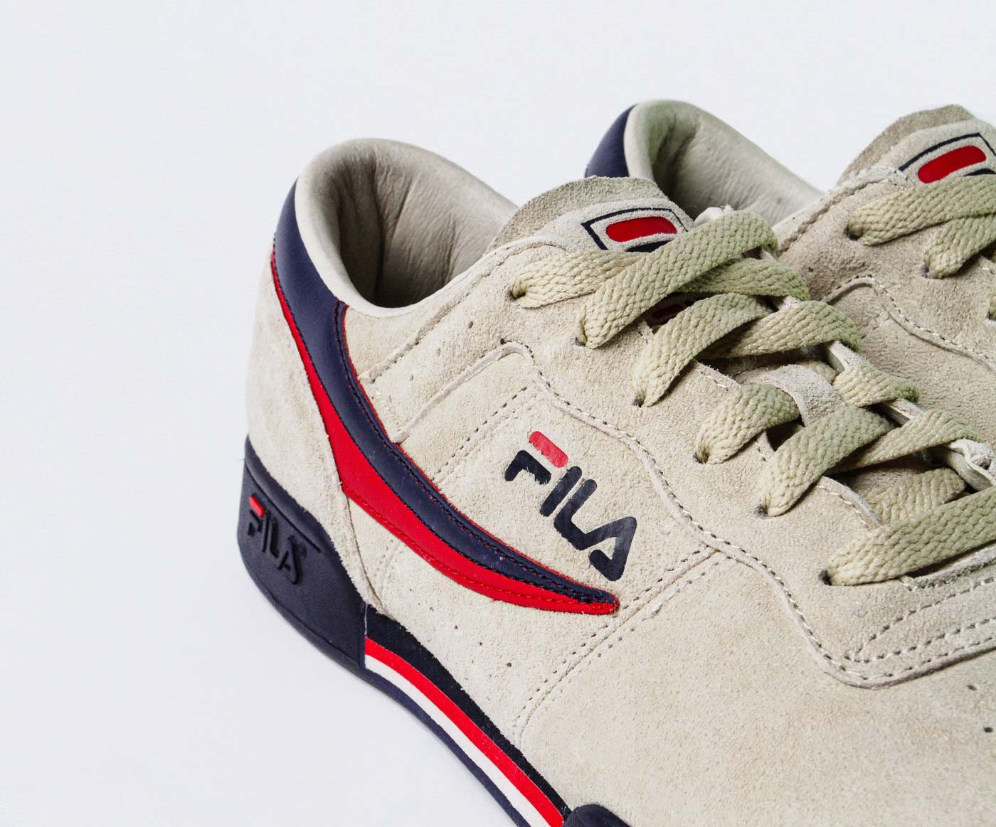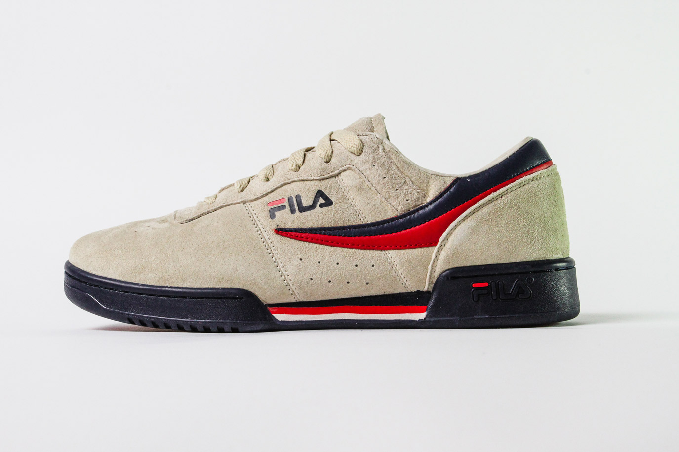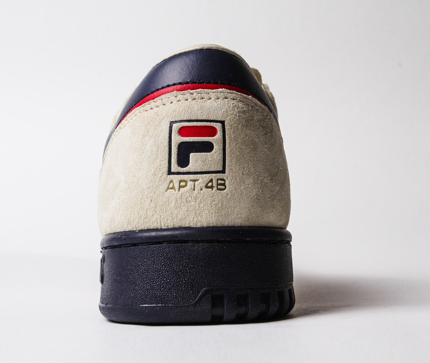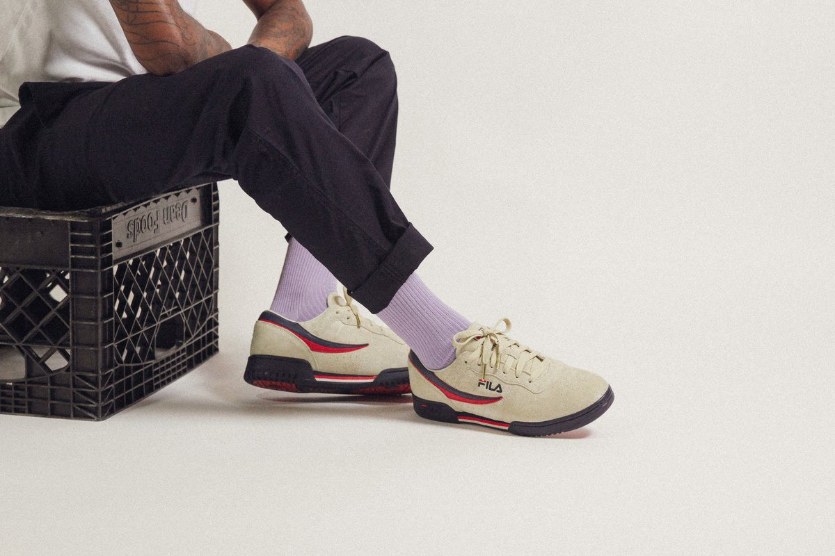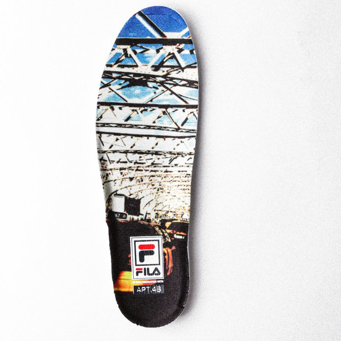 APT.4B and Fila are bringing back the Original Tennis sneaker, an 80’s classic. The LA-based concept store upgraded Fila’s original design with a red and blue suede logo and cream suede uppers. On the heel, the APT.4B logo is embossed in gold below the two-tone Fila F-box. The sneaker includes leather lining and a photo of the 59th Street Bridge on the insole.