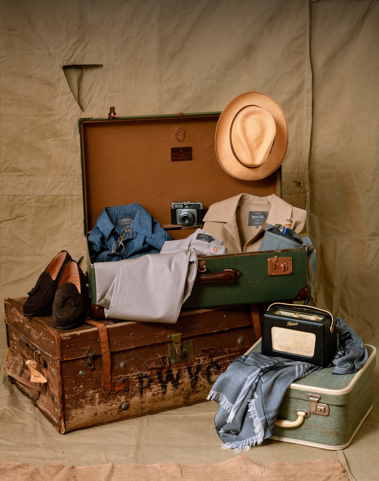 With everything going on – from social distancing to local lockdowns – many formally intrepid travelers are now expert armchair adventurers. Looking forward to better days ahead, Private White V.C. makes the case for IRL experiences with a new travel inspired collection. The Spring Summer 2021 Tour One line hearkens backs to days of grand voyages and ‘safari’ style. Every piece was designed and manufactured in the brands factory in Manchester, England. Mixing utilitarian details and lux fabrics – Italian linen, English twills, super soft suede – these looks have you covered, whether you’re trekking across the savanna or up to the corner bar. When its finally time to go wheels up, you can pack everything in the Private White V.C. x Globe-Trotter suitcase.