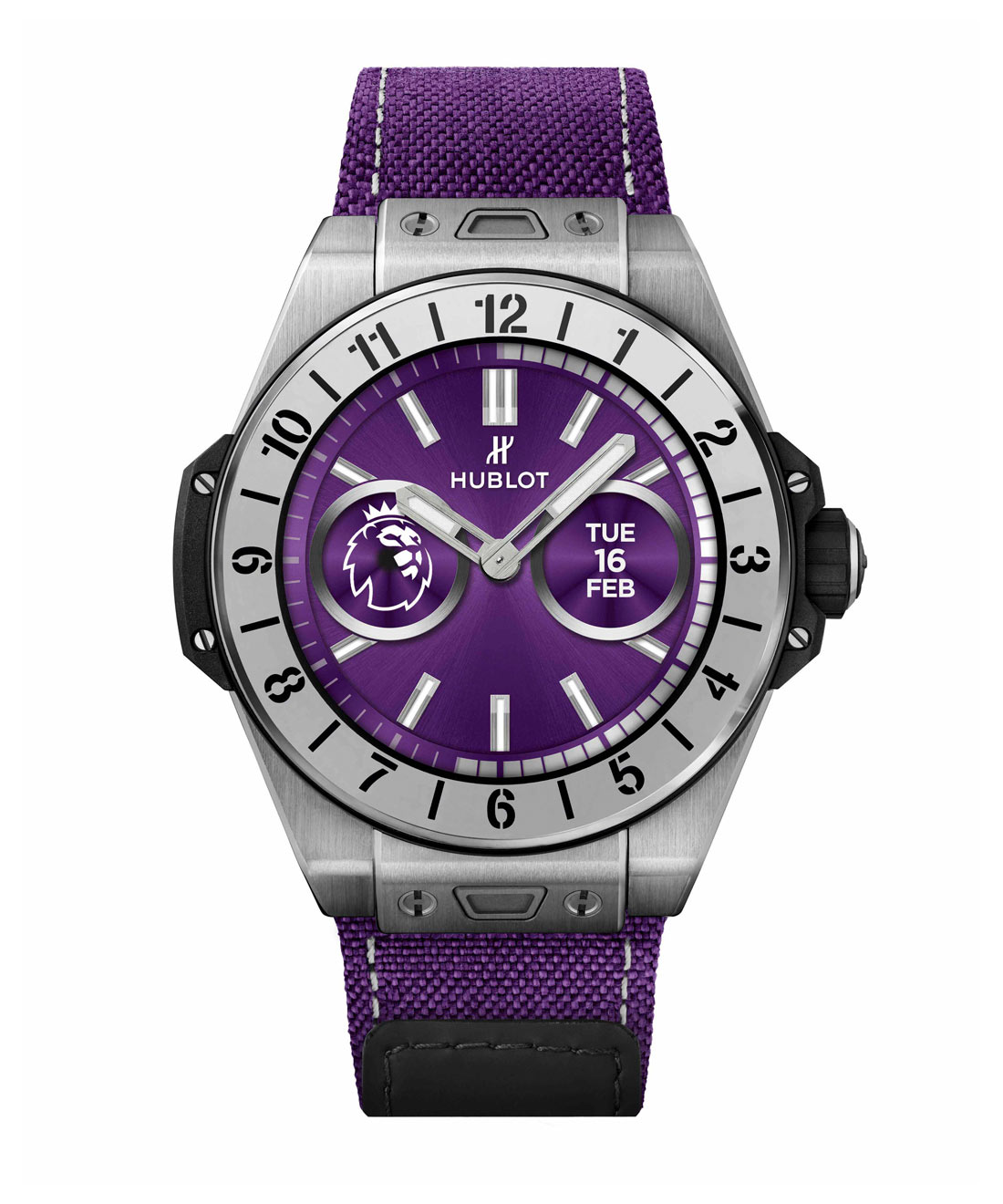 Hublot is issuing a limited-edition version of the Big Bang smartwatch dedicated to fans of topflight English football. The Big Bang e Premier League features a 42mm titanium case with a redesigned purple dial and purple strap, the signature color of the league. Powered by Google’s Wear OS, the watch comes preloaded with the new Premier League version of the Hublot Loves Football app. Tailored to the EPL fan experience, the app provides animated notifications for match kick-off times. When a match starts, the watch automatically switches to Match Mode, displaying team line-ups, penalties, substitutions, goals, added time and VAR decisions. Users can switch between simultaneous games with a quick screen tap. Available in a limited edition of 200 pieces.