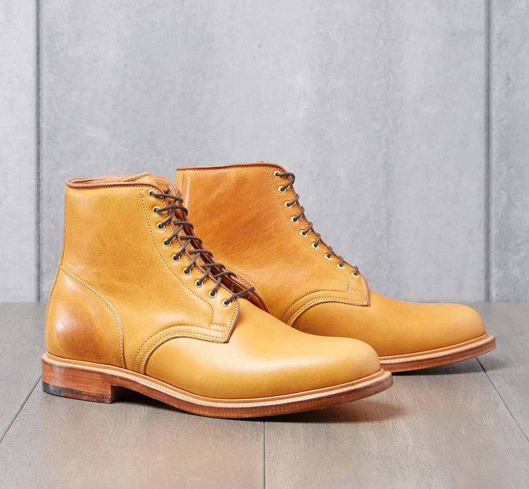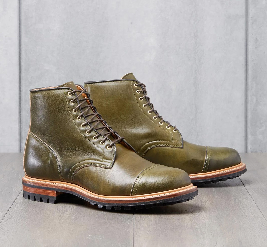 Seattle’s Division Road recently gave Viberg’s 90 year old Officer Boot a refresh. Combining two vintage boot patterns from the early 20th century, the Viberg x Division Road Latigo Horsehide Officer Boots are made with full-weight vegetable-tanned leather from Japan’s venerable Shinki Tannery. Each hide is oiled and waxed by hand to intensify the leathers natural characteristics and improve flexibility. The Camel Latigo Horsehide Officer Boot ($825.00) utilizes a 2030 last inspired by a low-profile Canadian Army officers dress boot. The derby style upper comes on a stacked leather sole with a dovetail heel. Made on the recently developed 2055 last, the Olive Latigo Horsehide Officer Boot ($825.00) combines a rugged Goodyear Commando lug sole with a classic cap toe. Both designs include French binding, brass eyelets, Goodyear Welt construction and channeled insoles made in Canada by Viberg’s master craftsmen.