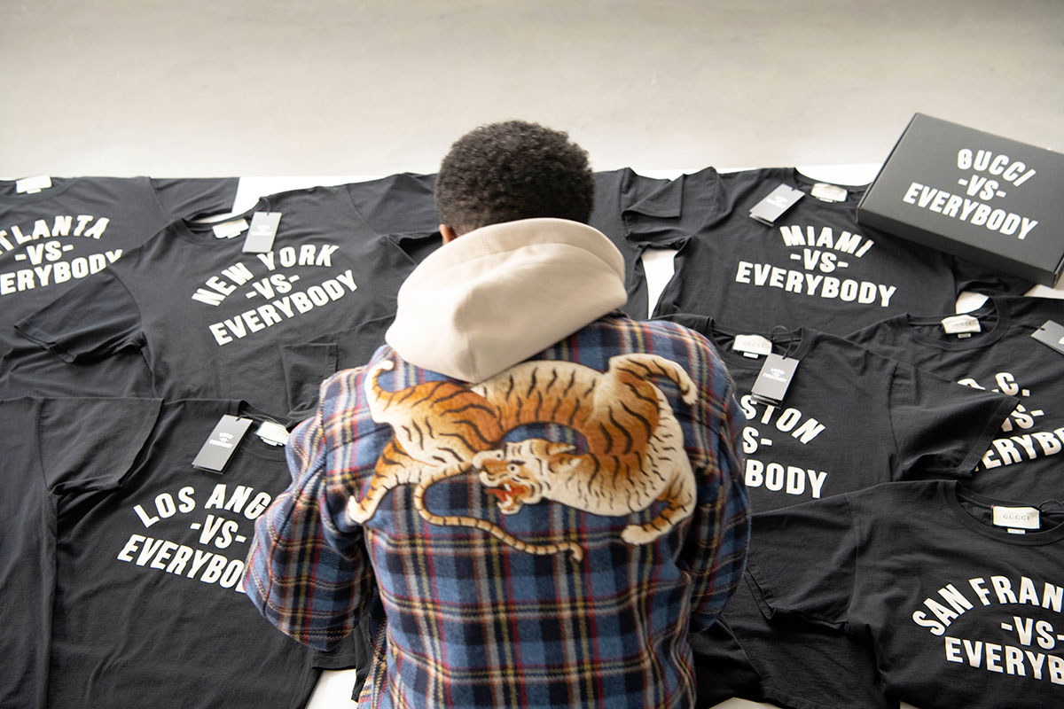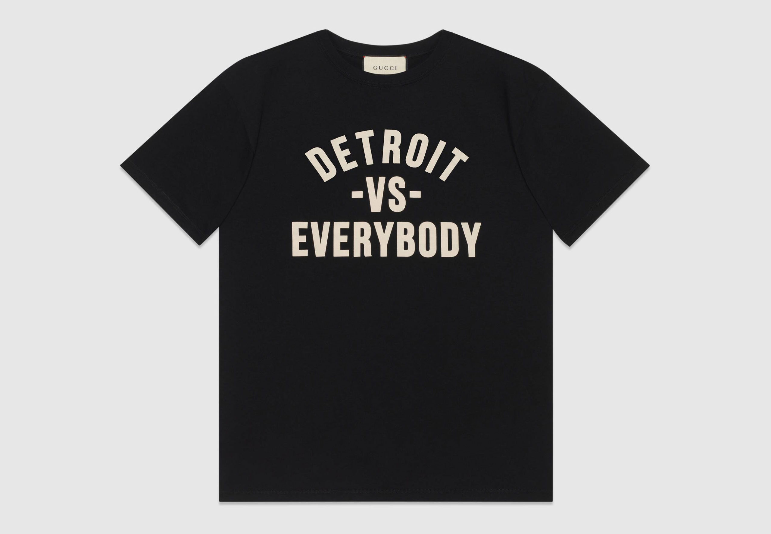 Detroit native Tommey Walker launch the original VS. EVERYBODY collection in 2012 as a love letter to his hometown. His crisp graphic tees, sweatshirts and hoodies became a local sensation, allowing Walker to create jobs and change in his community. As part of its ongoing commitment to community engagement, Gucci is collaborating with Tommey and Detroit Vs. Everybody for a special collection of 11 t-shirts designed to raise funds for local non-profits in cities across the U.S. Each limited edition Gucci vs. Everybody t-shirt ($390) will be sold exclusively in the city it supports, with the full line available at gucci.com. The Gucci Changemakers North America Impact Fund will make a donation to a non-profit organization in each city, focusing on organizations working to “foster unity through community action.”