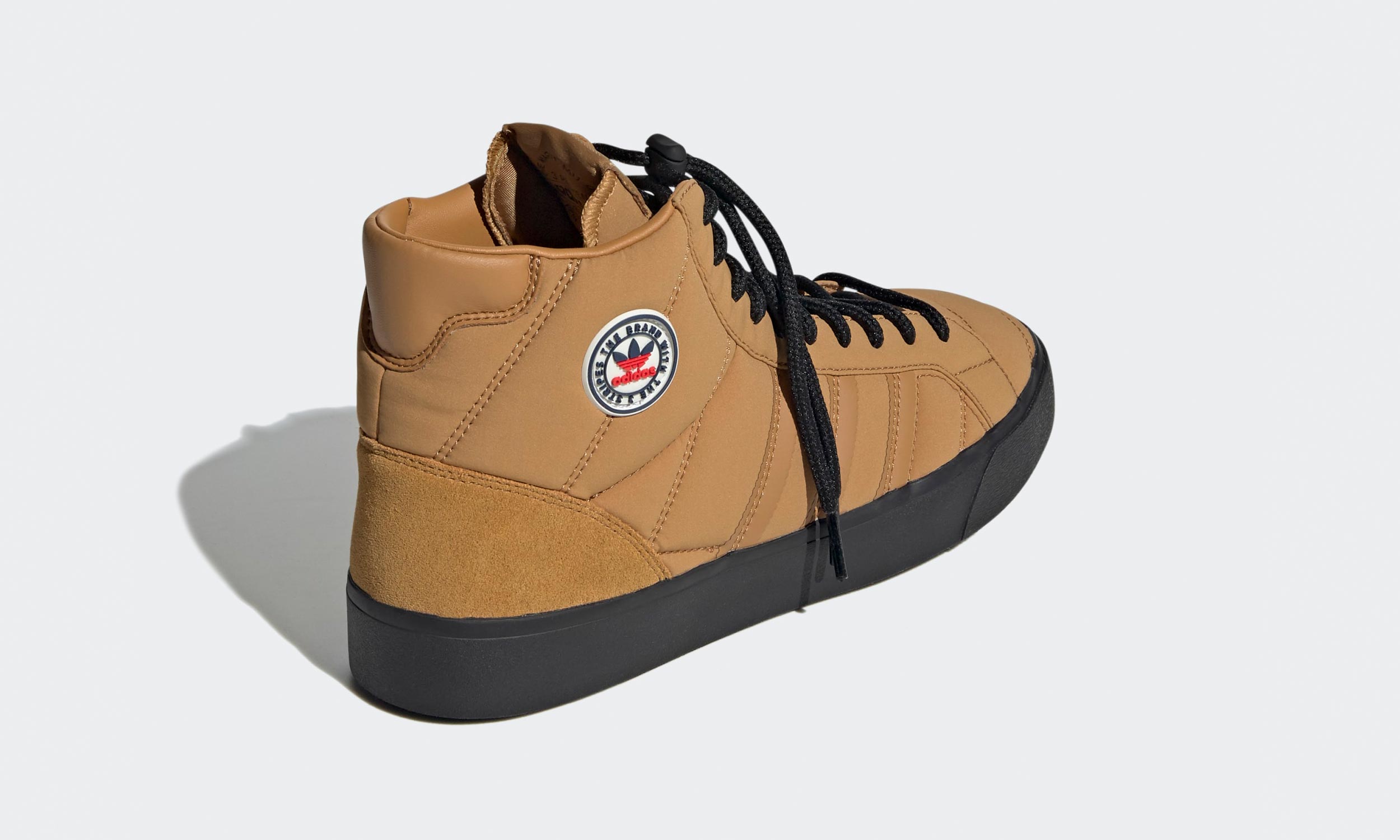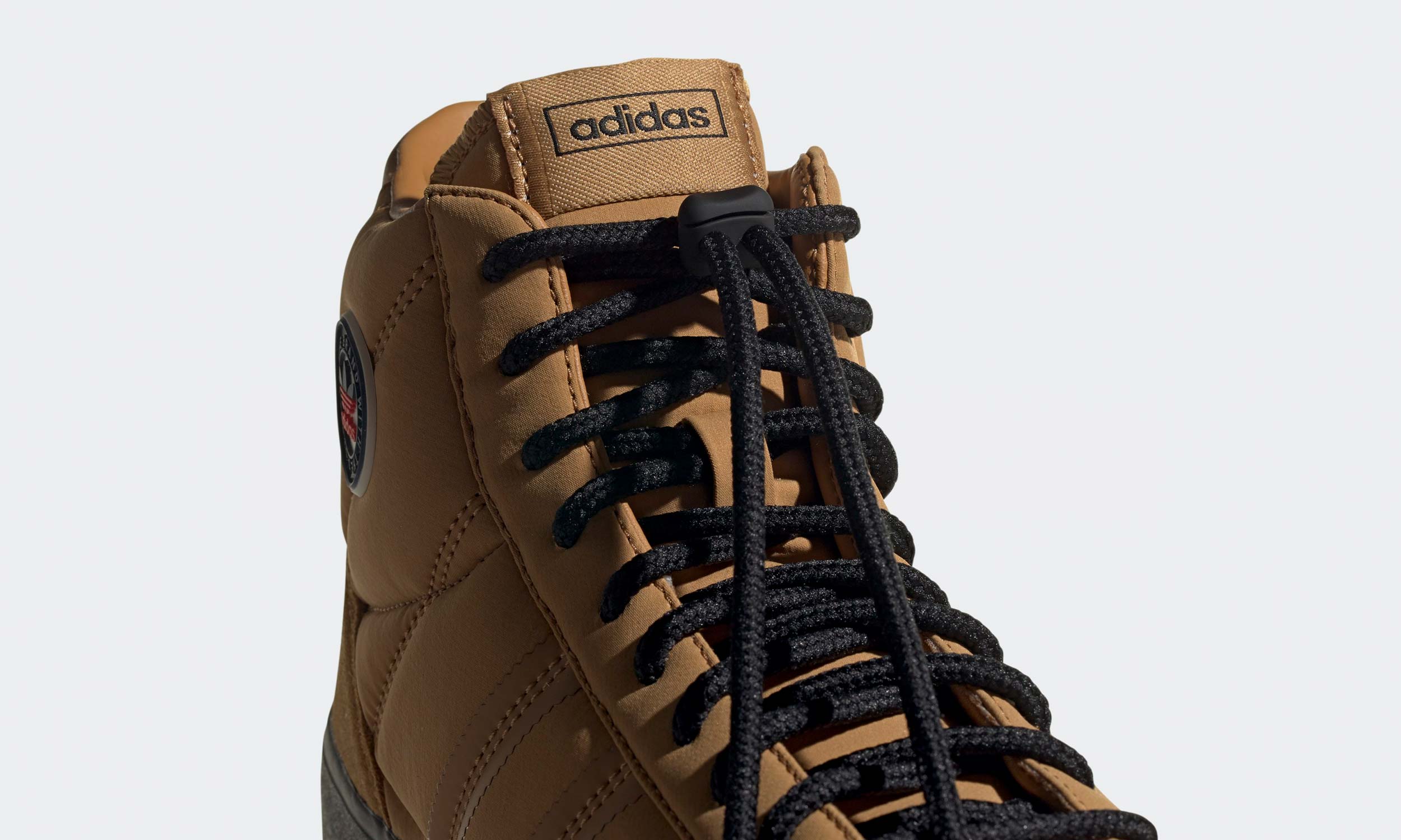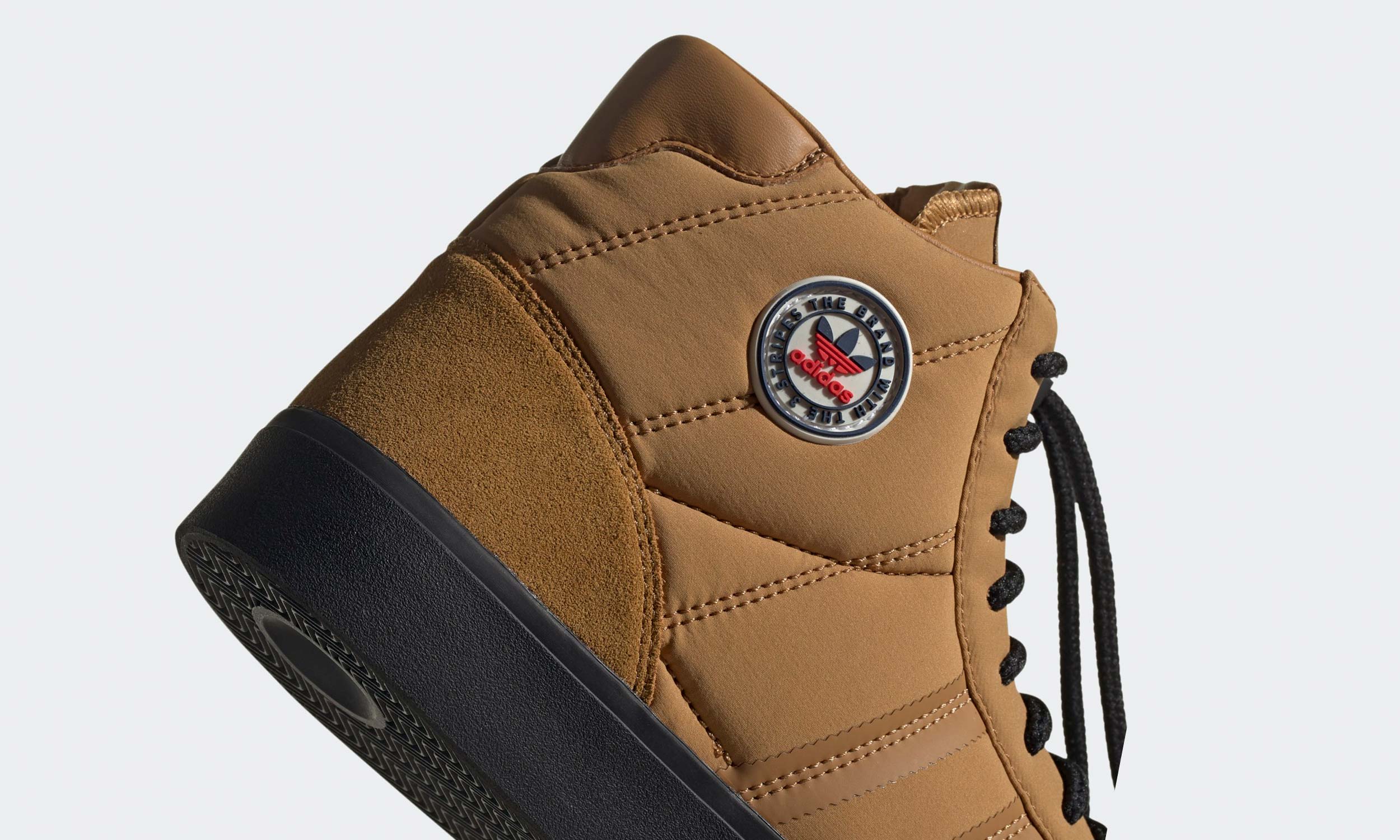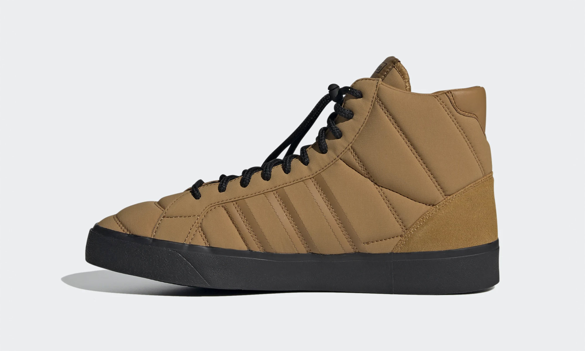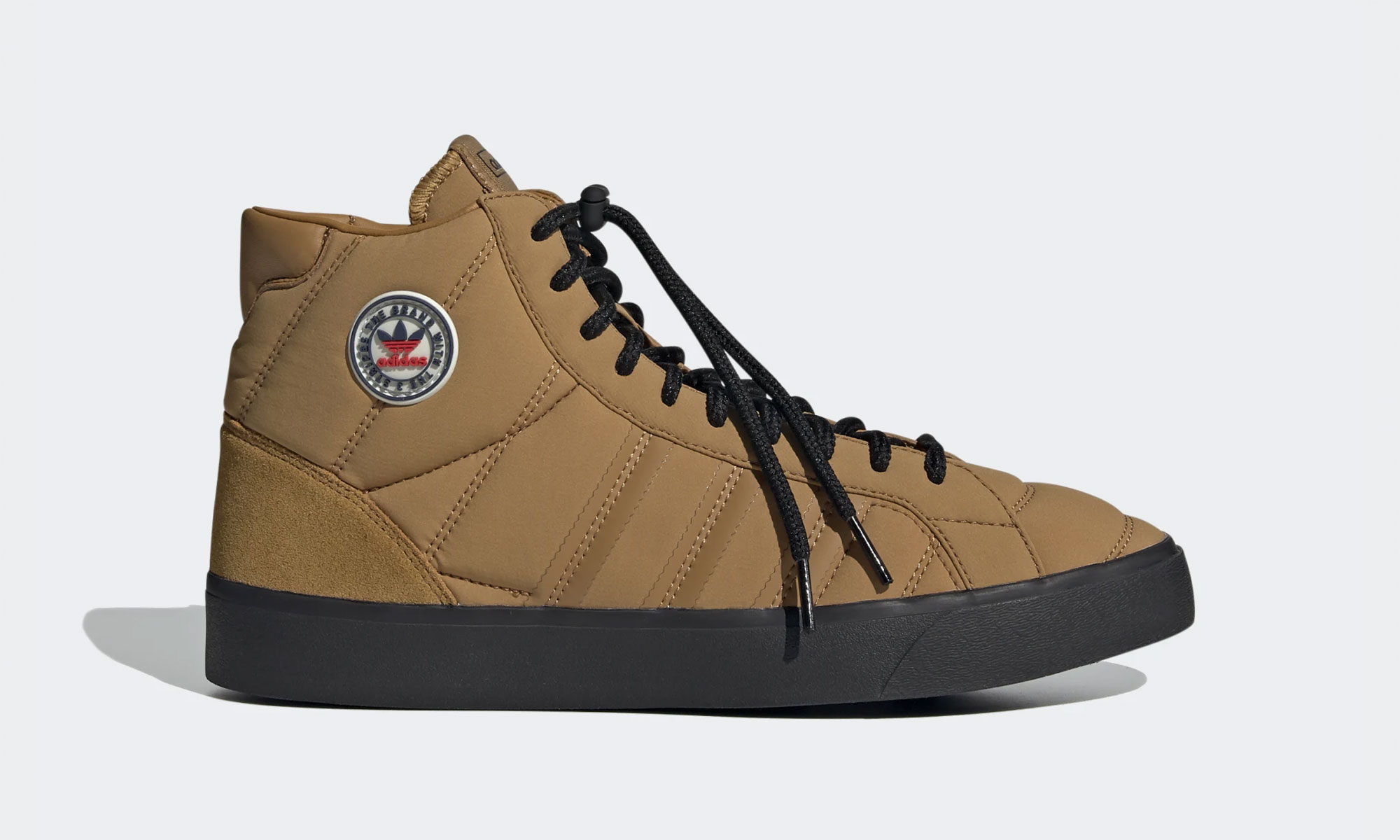 Born in 1969 and relaunched in 2012, the adidas Basket Profi always has a hint of retro style. The latest version of the basketball shoe channels the 1970s, an era when players wore tall socks, short shorts and old-school hi-tops. The earthy brown upper is quilted on all sides, trimmed with matching suede and leather accents, and topped with thick black laces secured by a toggle. Textured matte black rubber outsoles emphasize the minimalist, flat color effect.