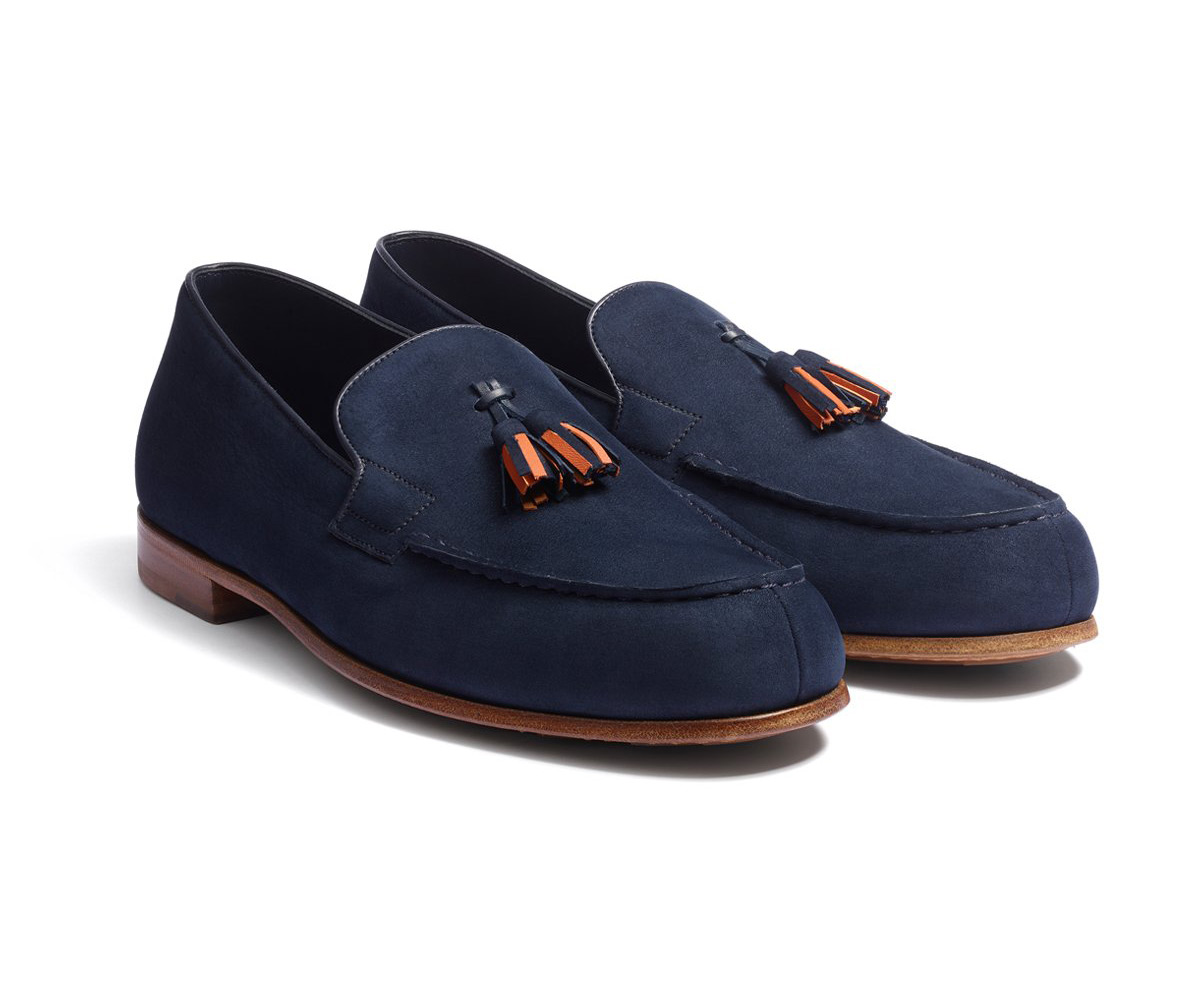 J.M. Weston’s annual contribution to the official French Open merchandise lineup has become the highlight of the tournaments Roland-Garros collection. Starting with the first collaboration in 2017, each successive design is a subtle variation on the clay court theme. The 2021 On Time sneaker, a style created specifically for the Roland-Garros collection, features a 90s inspired double Velcro closure, monogrammed rubber soles and orange clay colored piping on the heel counter. While this years version of the Moc loafer is a solid example of the brands easy elegance. Adapted from the popular 180 Moccasin, the supple navy nubuck loafer has almost no interior reinforcements for effortless slip-on wear. Weston also stepped up the style quota, trimming the uppers with navy and ‘clay’ orange leather tassels. Both styles are made in J.M. Weston’s factory in Limoges, France using traditional techniques.