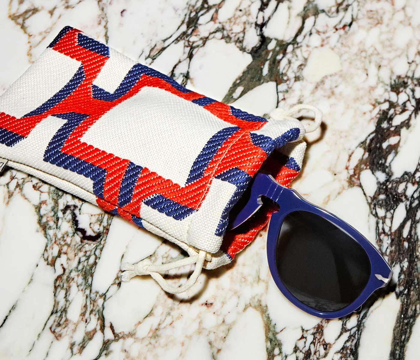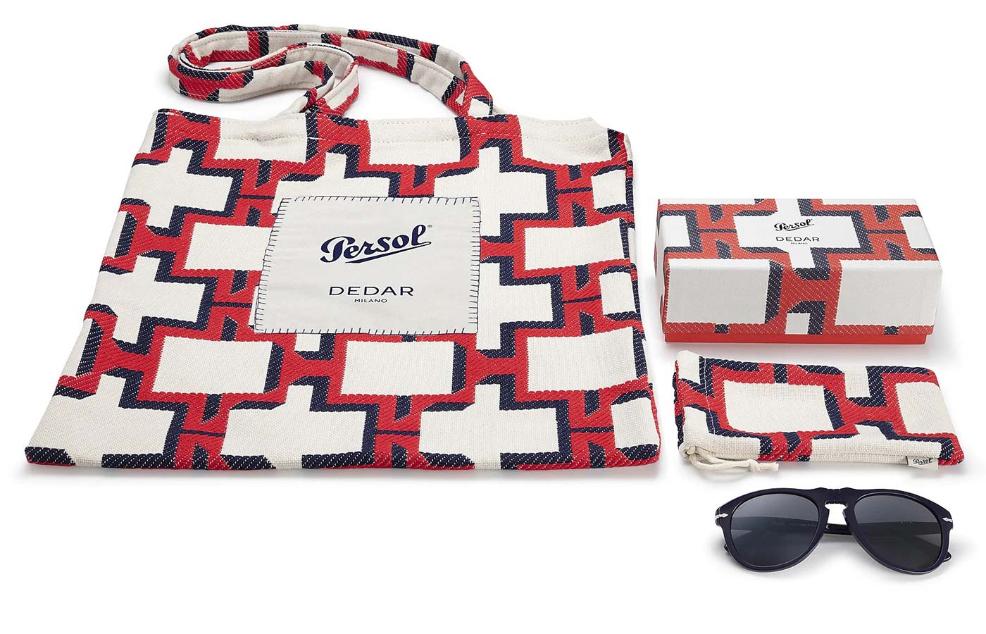 Persol created a limited edition version of its signature 649 sunglasses exclusively for Italian fabric house Dedar. Founded in 1976, the family-run firm manufactures some of the finest upholstery and drapery fabrics, characterized by unexpected patterns and used by top interior decorators. From 2011 to 2020, Dedar produced fabric and wallpaper collections for Hermès. Inspired by the firms colorful ‘Campus’ fabric, the Dedar 649 sports a new all-blue look. The handcrafted blue acetate frames are set with blue polarized lenses, co-branded with red logos on the temple tips and finished with silver-tone arrows at the temples. Each pair comes in a co-branded box with a ‘Campus’ pouch and matching tote.