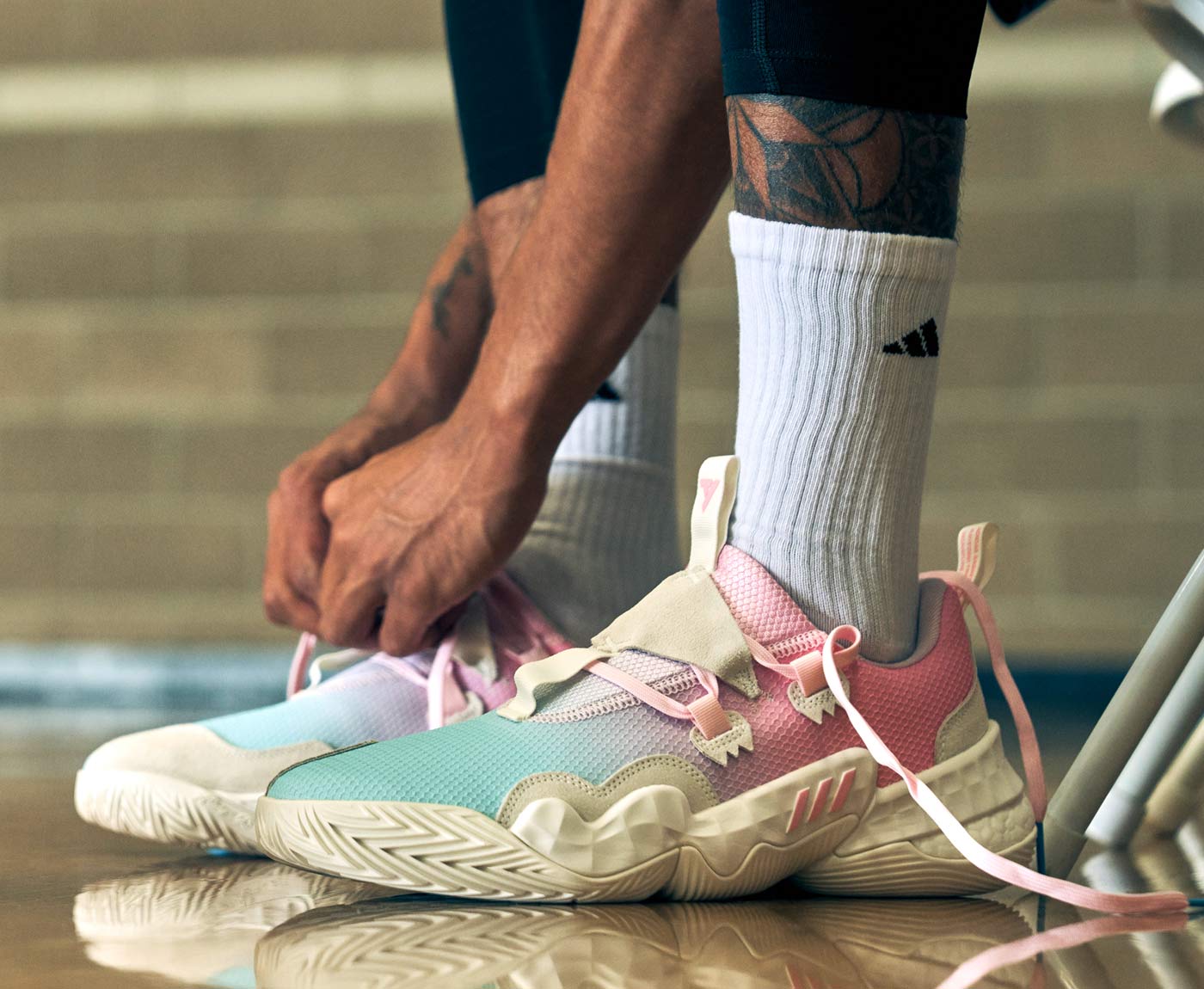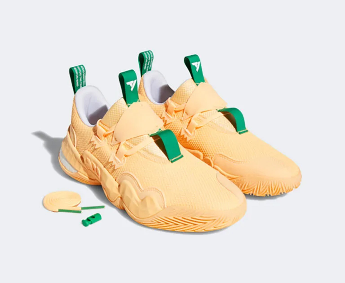 Adidas is gearing up to release Atlanta superstar Trae Young’s first signature collection. Inspired by the lace-less N3XT L3V3L high top worn by Trae in his first NBA season, the Trae Young 1 combines a half-bootie with minimal lace loops and a lace-less forefoot for superior lockdown. Trae’s new ‘TY’ logo is printed on the tongue pull-tab and his signature is printed on the heel tab. Adidas branding includes the 3 Stripes logo on the Lightstrike mid-sole and BOOST stamped on the heel – a reference to the cushioning in the heel. The shoes are finished with suede accents on the medial and lateral toe and a suede overlay covering the lacing system.