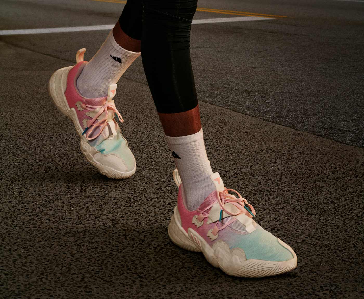 The initial launch will include three apparel pieces – the Trae Pant, Short and Quarter Zip Pull-Over – and five shoe colorways; the ICEE, ICEE Cotton Candy, Peachtree, So So Def, and So So Def ATL. First up, the Trae Young 1 ICEE and ICEE Cotton Candy, an official collaboration with the ICEE frozen drink company. Priced at $140.00 each and available October 1 at adidas.com.