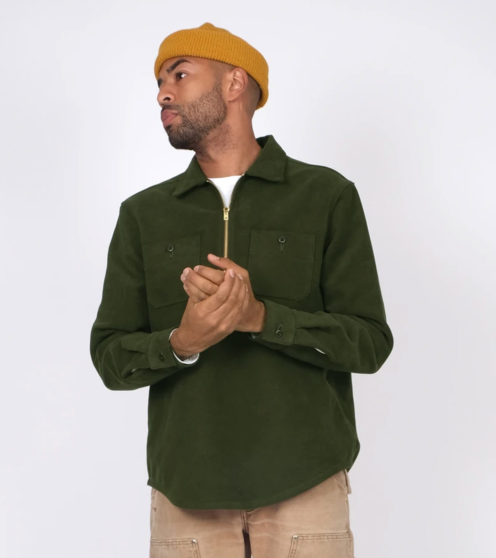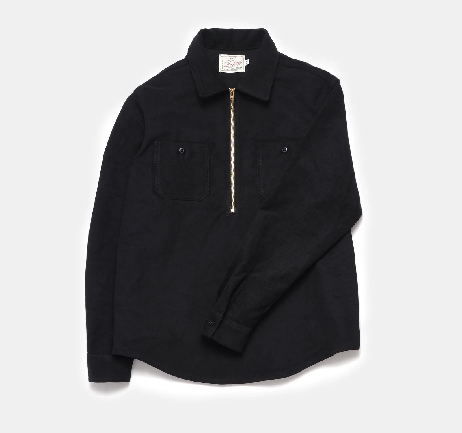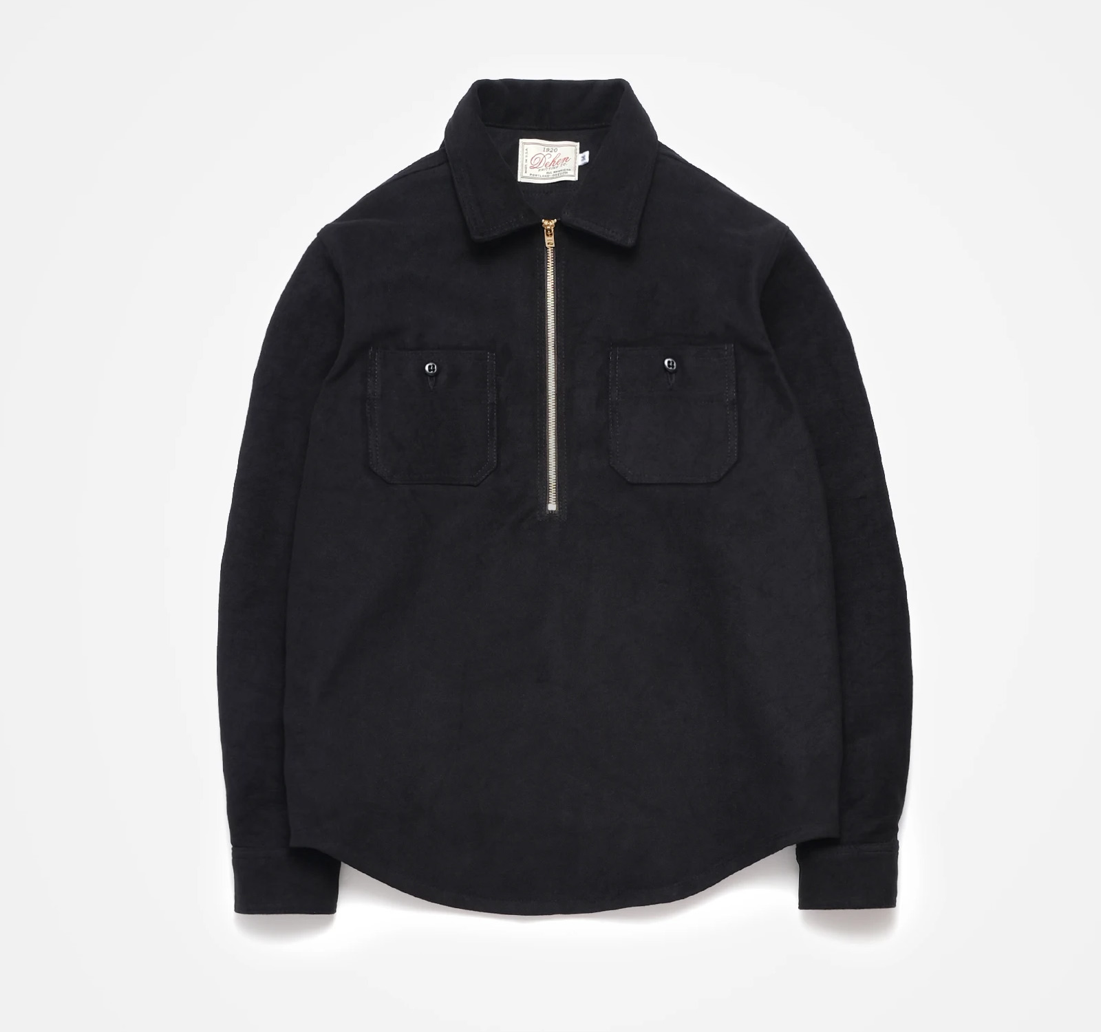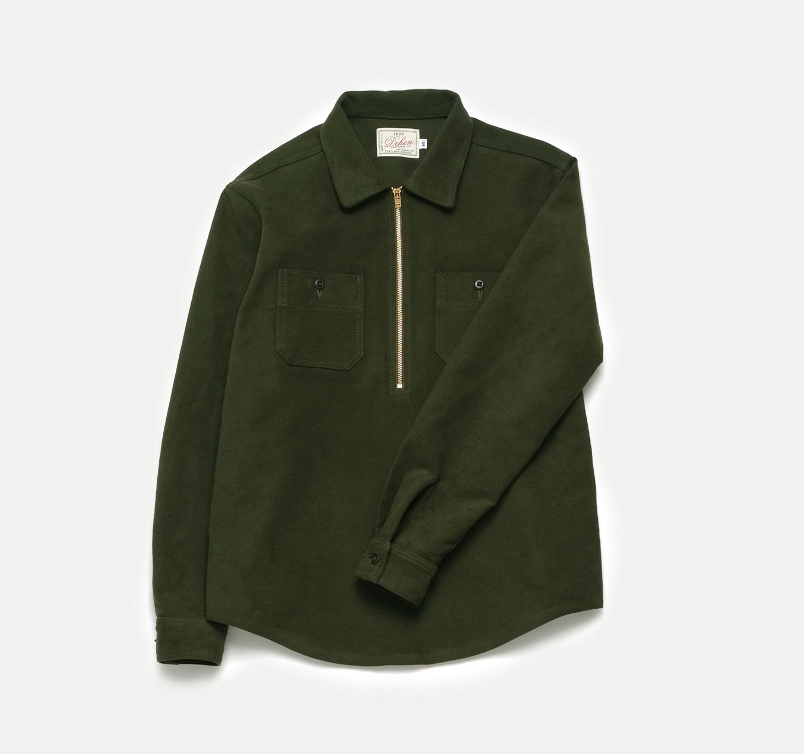 Inspired by the old-school anorak work shirts worn by loggers in the Pacific Northwest, Portland’s Dehen Knitting Company is elevating the menswear staple for Fall ‘21. The new Dehen 1920 ½ Zip Club Shirt is cut from velvety-soft cotton moleskin and fitted with an 11” brass zipper and two chest pockets. Available in Loden green and Black, these work shirts can be worn over a t-shirt as a light jacket our under a heavier overcoat.