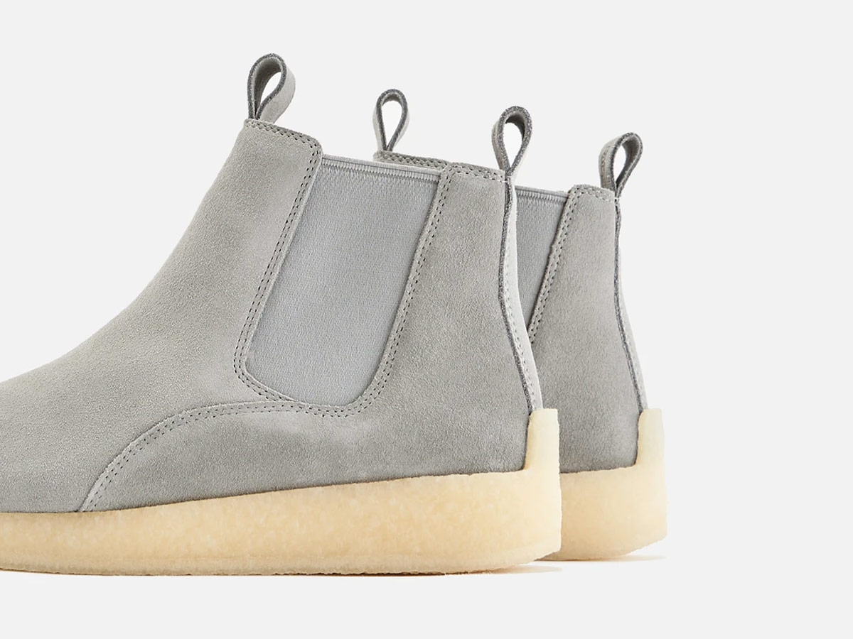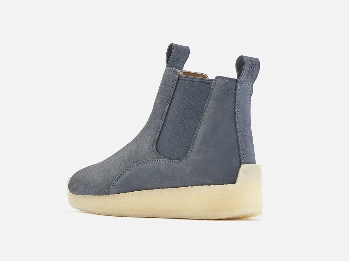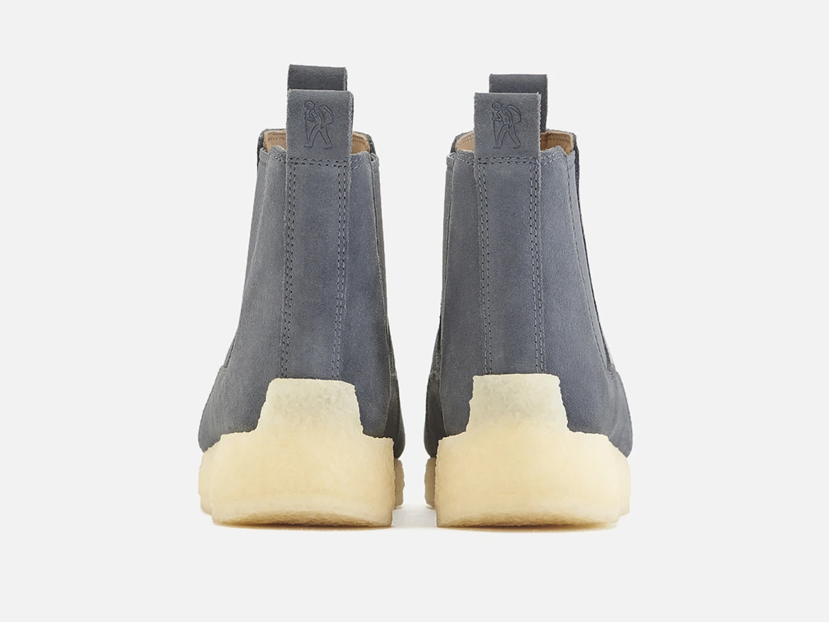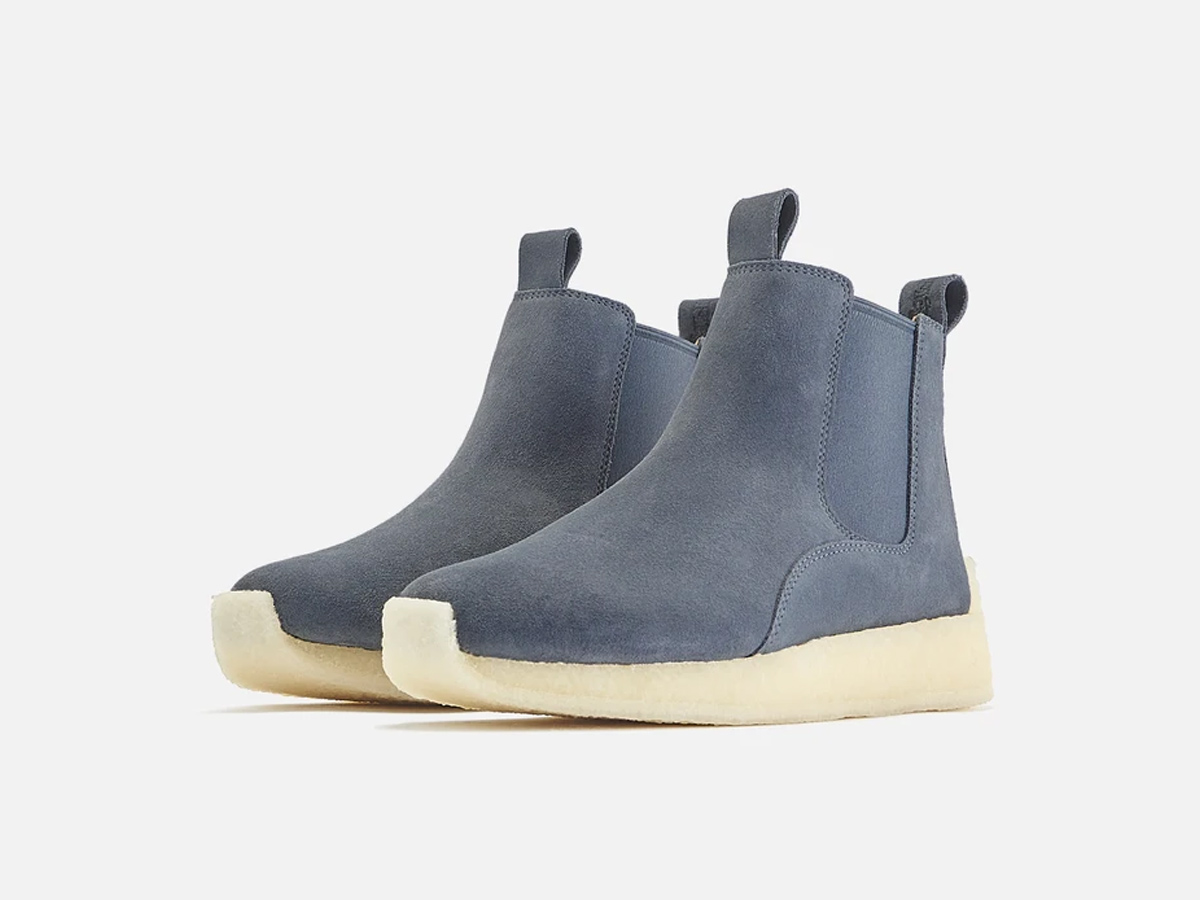 If you’ve grown accustom to comfortable house slippers, slides or chunky sneakers over the past 18 months but want to step it up this winter, Ronnie Fieg’s new Radlett boot might be the perfect solution. Part of his ongoing ‘8th Street’ collaboration with Clarks Originals, these modern Chelsea boots are set on thick crepe soles and have elasticated sides and co-branded heel pulls to help you slip in and out. The uppers are available in Blue Grey or Light Grey suede with leather sock liners. This limited edition style is a Kith web-exclusive and will not be sold in other retail locations.