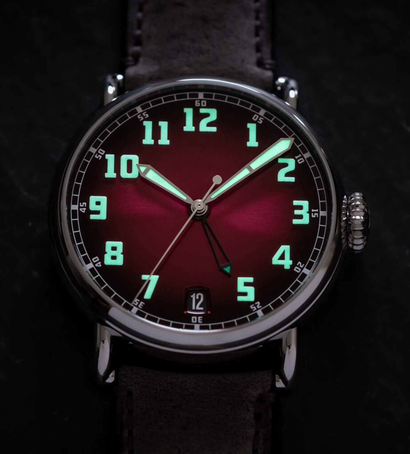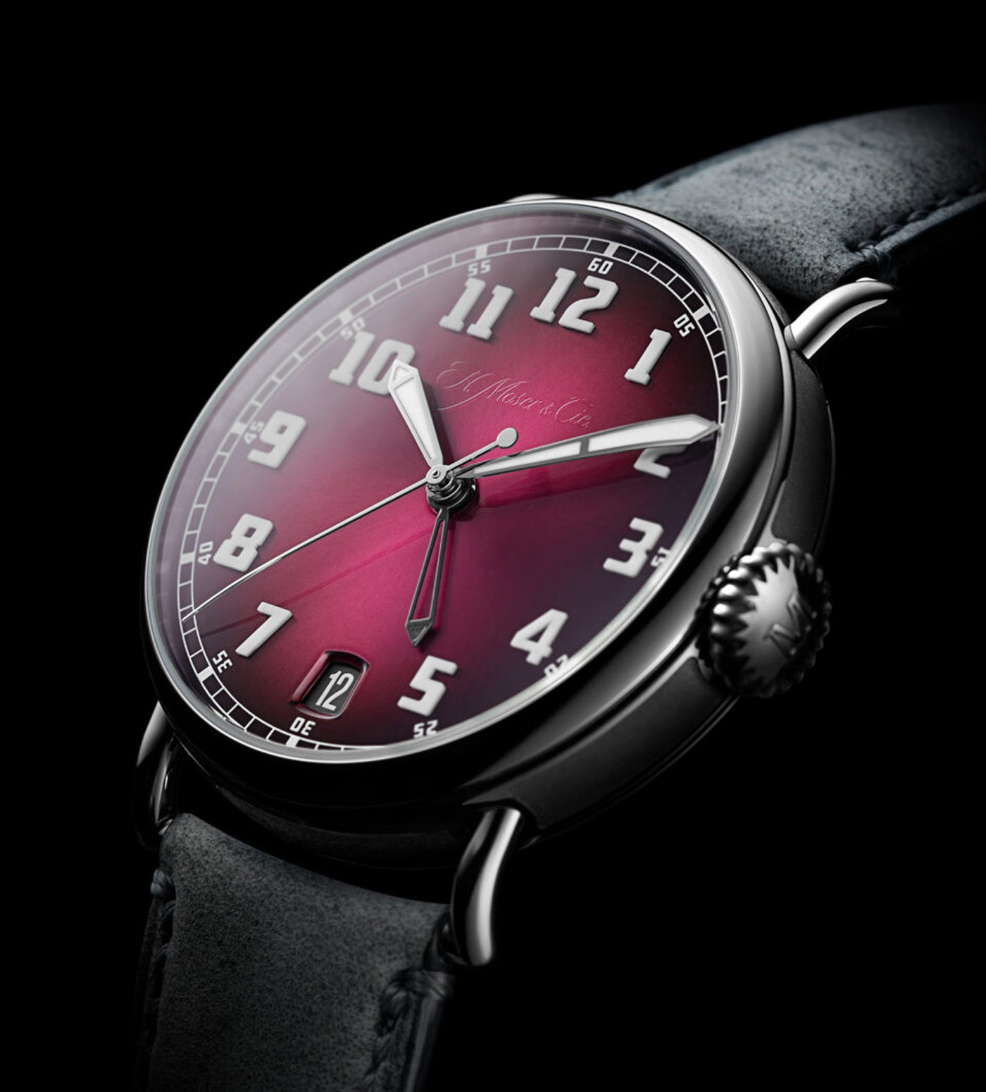 The original iteration of H. Moser & Cie. was a pocket watch manufacture founded in St. Petersburg, Russia in 1828. After the death of founder Heinrich Moser and the tumult of the Russian Revolution, the business was reconstituted in Switzerland in 1953. Today, the watchmakers Heritage collection revisits the brand’s almost two hundred year history to inspire new timepieces. The latest addition to the range pairs a dual time function with a burgundy fumé dial. Echoing H. Moser & Cie.’s early 20th century models, the limited edition Heritage Dual Time features a pared-down dial with 3-dimensional Globolight indices and Arabic numerals. The grey hand indicating the second time zone can be hidden underneath the main hours hand when not in use. The pocket-watch inspired 42-mm stainless steel case houses the HMC 809 self-winding manufacture calibre equipped with a Dual Time function.