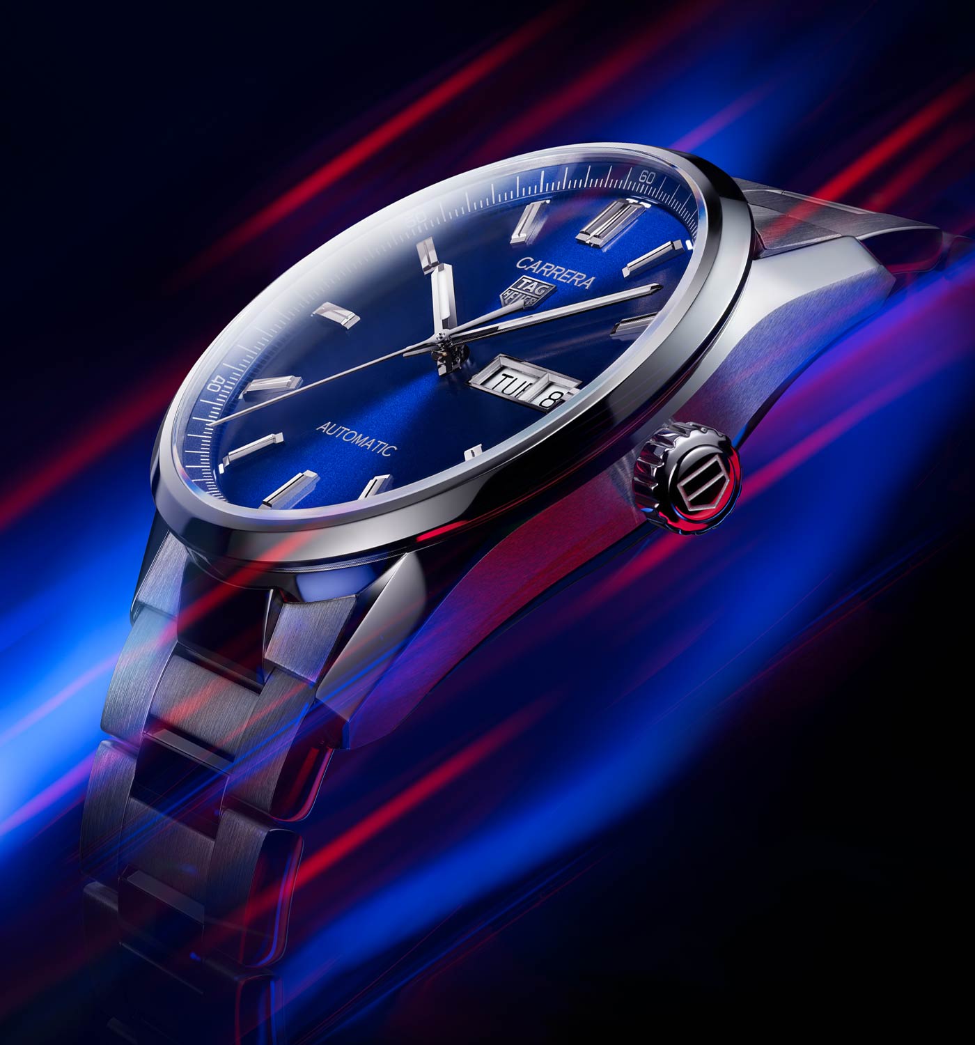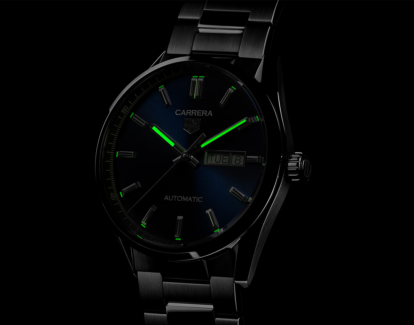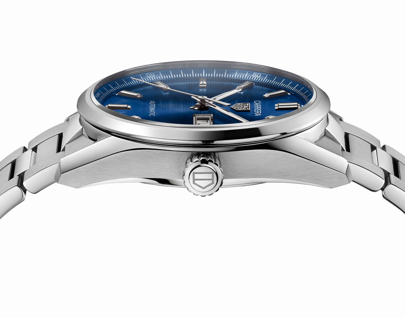 TAG Heuer’s Carrera Three Hands just got a major refresh, and Ryan Gosling is here to tell you all about it. The Canadian actor is fronting the campaign for the new 13 piece collection, featuring men’s sizes from 39-mm to 41-mm in diameter. All the models have stainless steel cases with exhibition backs and a choice of blue, black, silver or white sunray dials – decorated with the new Carrera logo and luminescent hands and indices. Twelve of the models have stainless steel bracelets with new H-shaped links. One of the Day Date models is available on a ‘croc’ leather strap. The 41-mm Carrera Day Date is fitted with a date window at 3 o’clock, while the 39-mm Carrera Date and 41-mm Twin-Time Date have date windows at 6 o’clock.