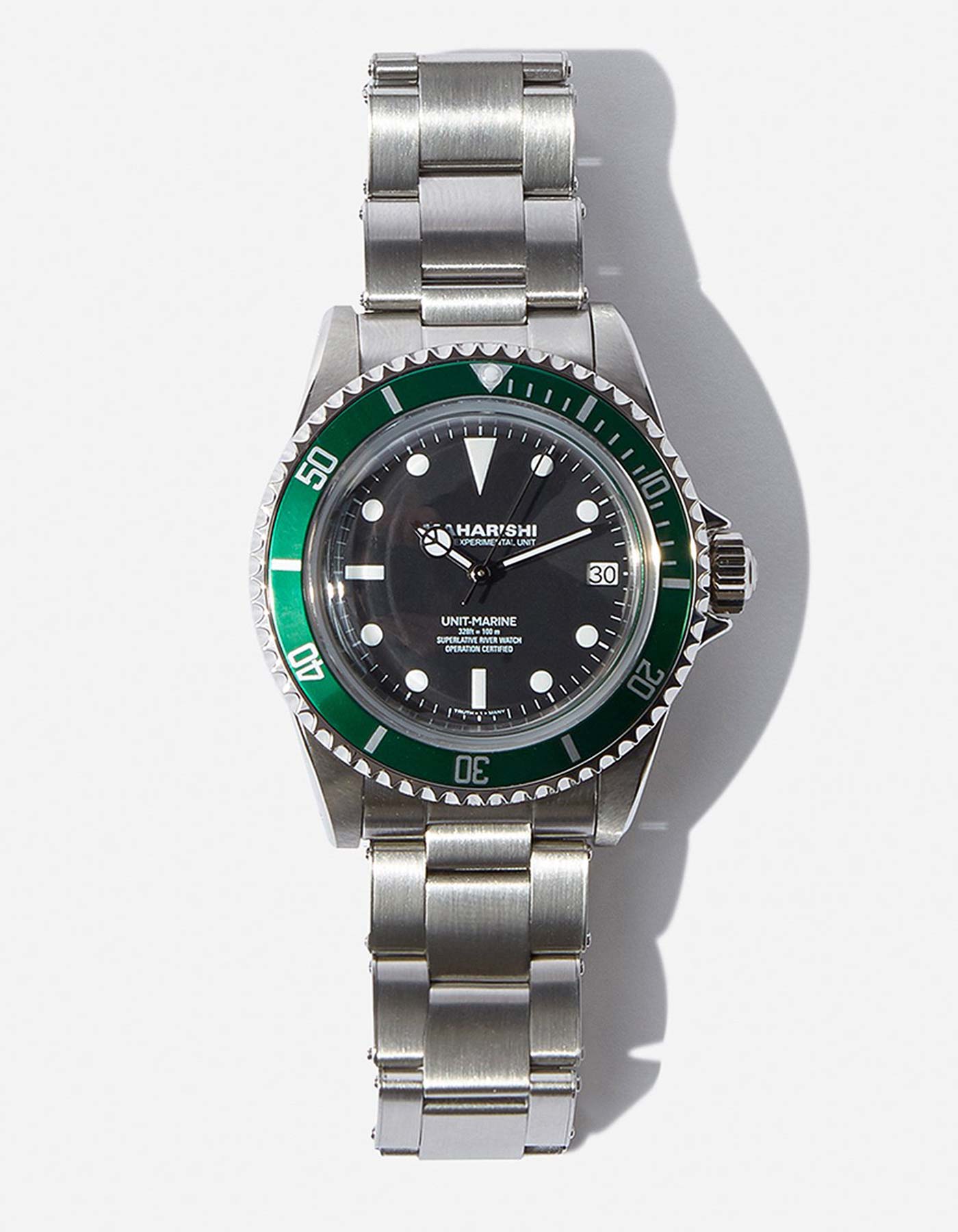 Maharishi’s latest delivery includes two new timepieces inspired by vintage diving watches. The 9501 Riverine Diver 2.0 ($895.00) takes design cues from highly collectible Vietnam era watches issued by the US Navy to infantrymen on recon missions in the Mekong Delta. Powered by an automatic Seiko movement, this reproduction is encased in a 41-mm brushed steel body with an aged dial and a rotating bezel. It comes with interchangeable black and army green NATO straps.