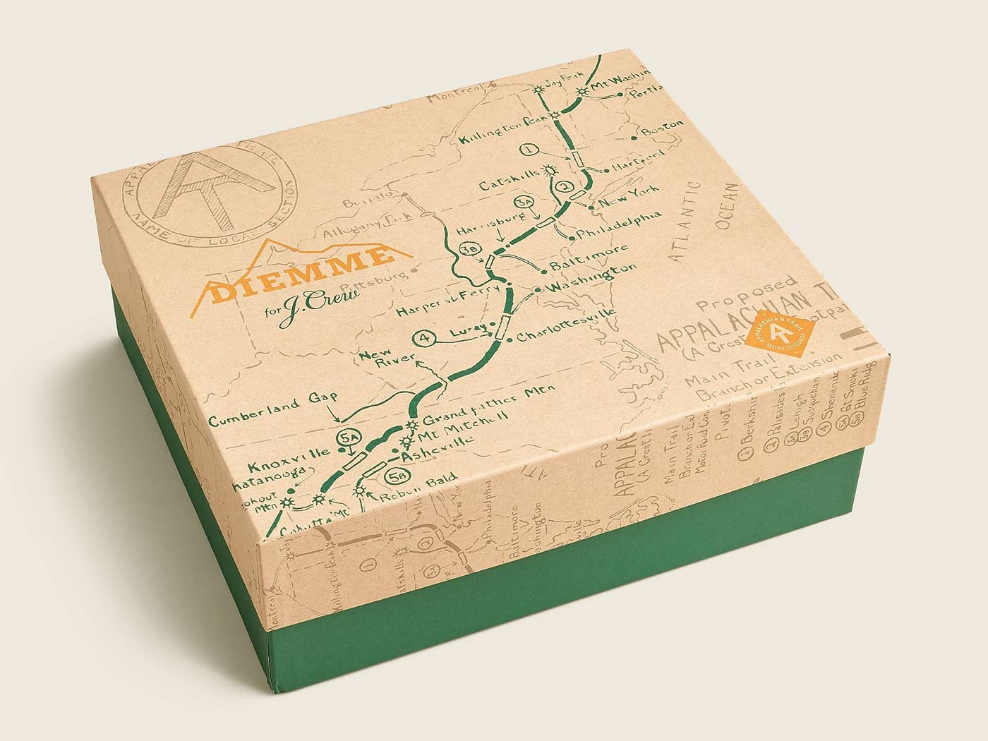 J.Crew teamed up with Diemme for two exclusive versions of the Roccia Vet boot inspired by the Appalachian Trail. Handmade in Italy, the hiking boots are available in Hightower Grey and Katahdin Brown. Each pair comes in a co-branded box printed with a map of the Trail. Originally part of the Calzaturificio Diemme hunting collection, J.Crew’s limited edition Roccia Vet has been updated with Cordura nylon uppers, padded lining, ankle supports for stability and lighter soles for comfort – whether you’re hiking up a trial or stomping down the street.