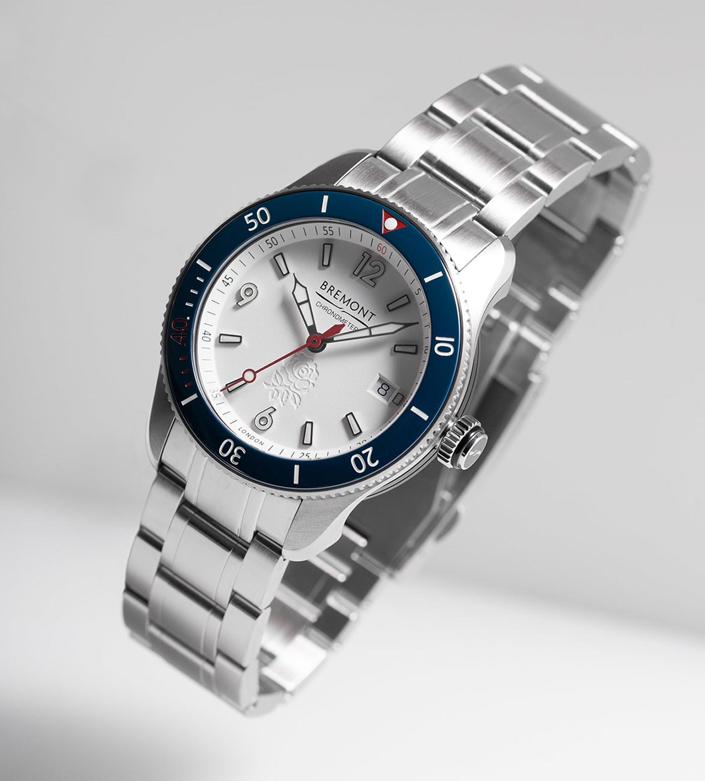 In the run-up to the 2022 Six Nations Championships, Bremont unveils its latest timepiece dedicated to England Rugby. The Limited Edition S300 RFU chronometer comes in a 40-mm stainless steel case topped by a blue ceramic bezel and decorated in colors inspired by England’s team kit. The white dial features a debossed English rose, date window at 3 o’clock, and luminous hands and markers – alongside a sweeping red seconds hand which nods to the flag of England. Another English rose appears on the steel case back, surrounded by the words England Rugby – Twickenham. Based on Bremont’s Supermarine diver with a chronometer-tested movement, the watch is water resistant to 300 meters. Limited to 150 pieces.