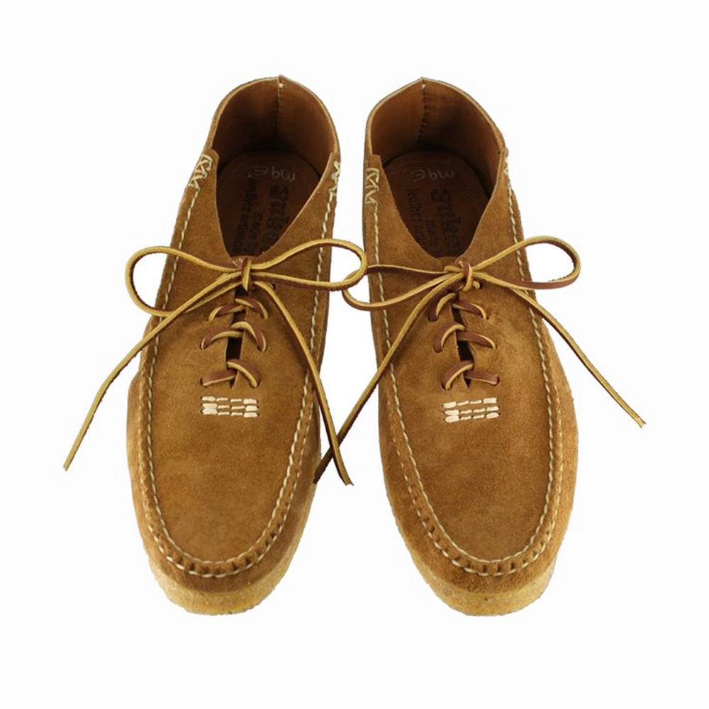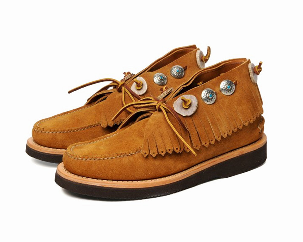 Yuketen’s Spring/Summer 2022 collection includes several new styles alongside a lineup of fan favorites like the Angler Moc, horsebit loafer and bluchers with kiltie fringing. Among the new additions standouts include suede chukka boots with a deep fringe and conchos secured by rawhide laces, and black camp mocs embellished with an antler ‘bit’ across the vamp – available with or without decorative conchos. Most of the shoes are hand-cut and sewn in the USA on the label’s proprietary lasts. The selection also includes rings, bracelets, belts and bolo ties.