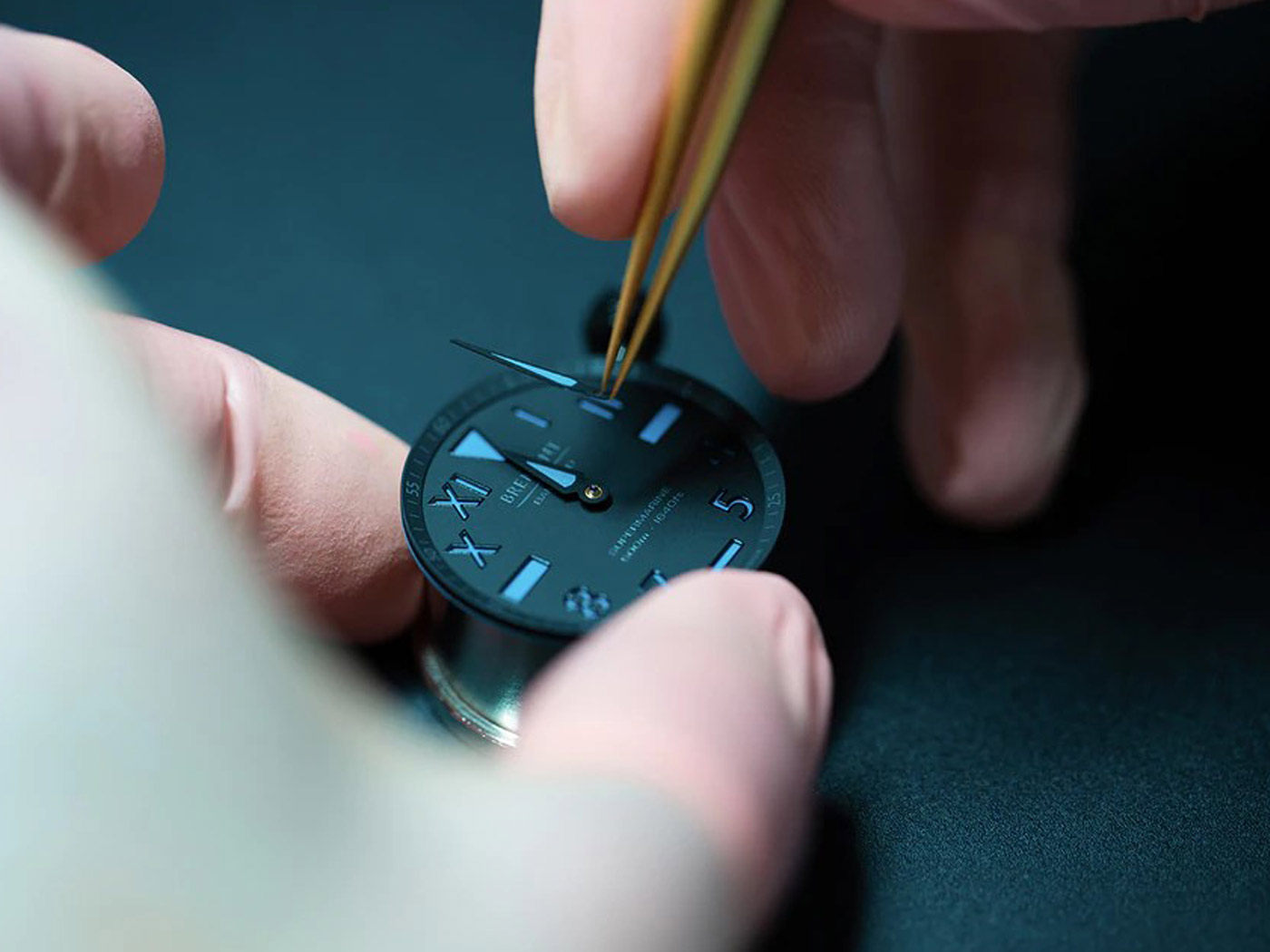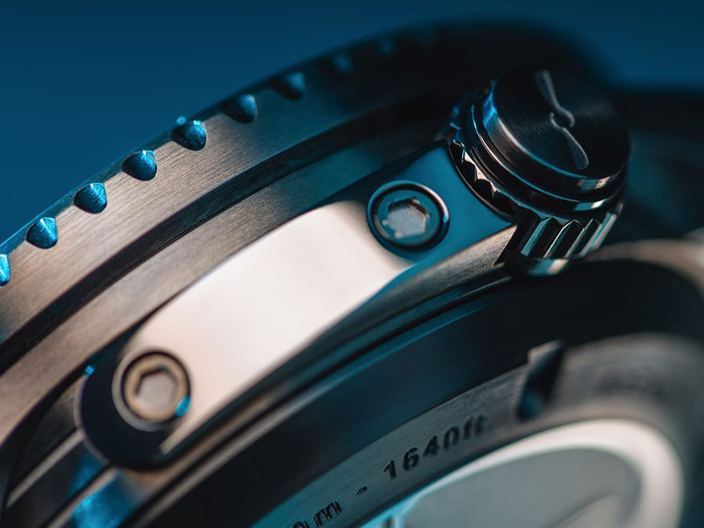 Bremont teamed up with Bamford Watch Department to create an exclusive version of its Supermarine S500 dive watch. The S500 Bamford Special Edition combines Bamford’s passion for DLC coating and vibrant lume with Bremont’s signature three-piece case construction. Newly styled hands and indexes filled with blue emission Super-LumiNova standout against the matte black ‘California dial’ – a watch face with half Roman and half Arabic numerals. The increased luminosity is a result of the dials layered construction. Instead of a single plate, a layered dial is comprised of a solid disc of luminous material which is covered with a plate with index apertures to expose the lume as characters. Limited to 250 pieces, the 43-mm DLC coated stainless steel case houses the UK-made Modified Calibre BE-36AE.