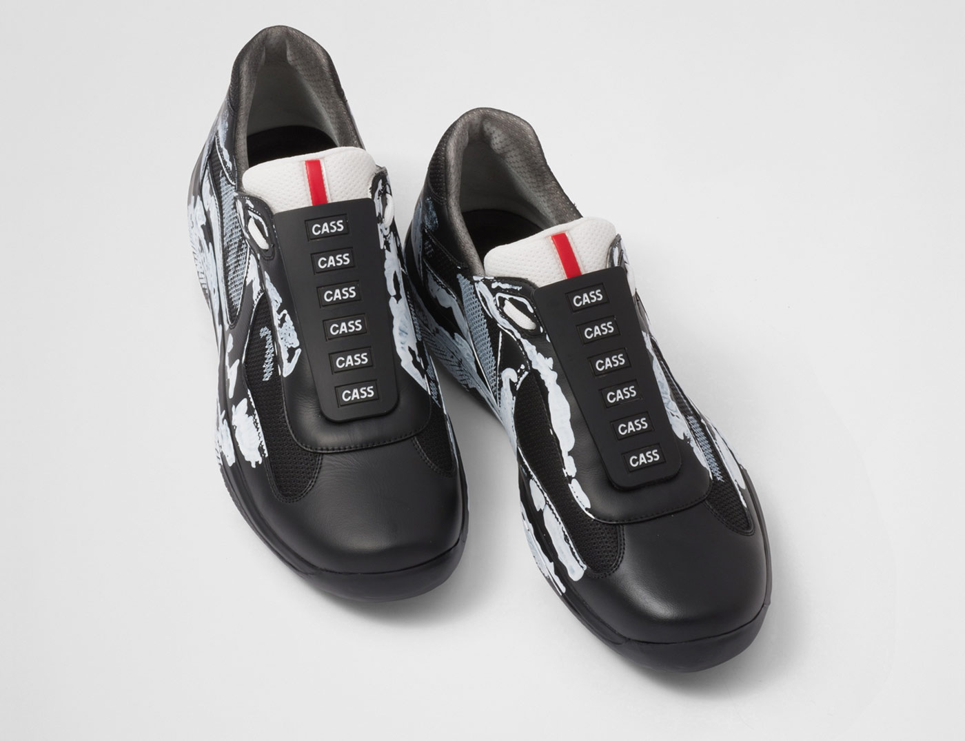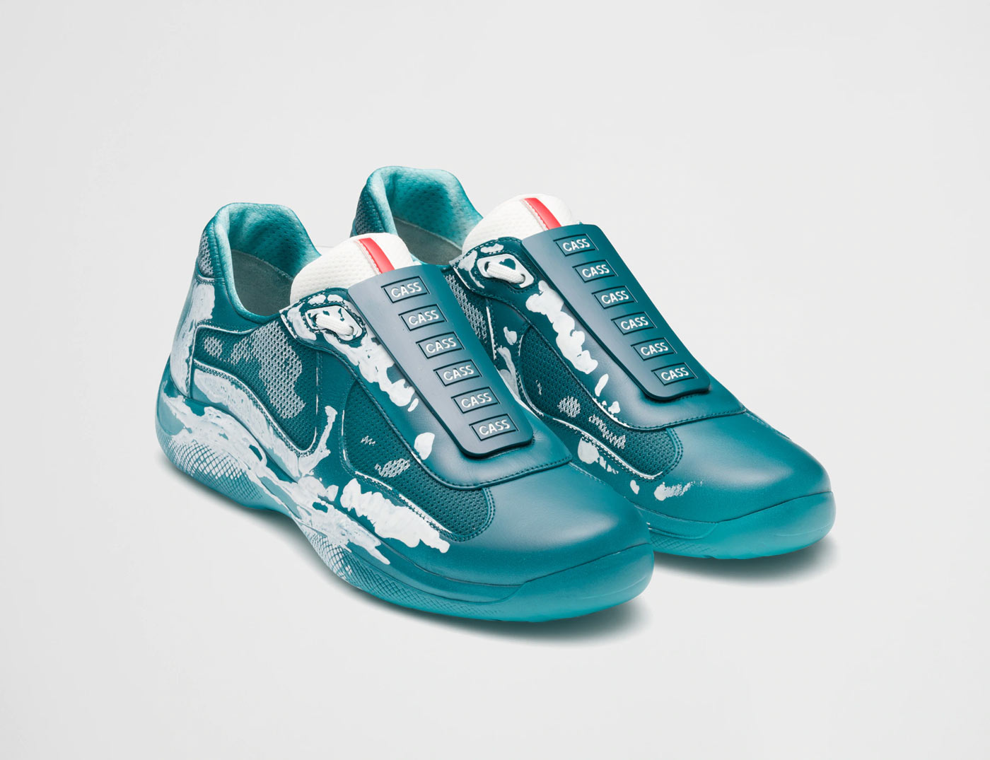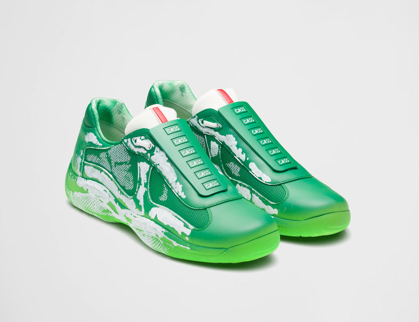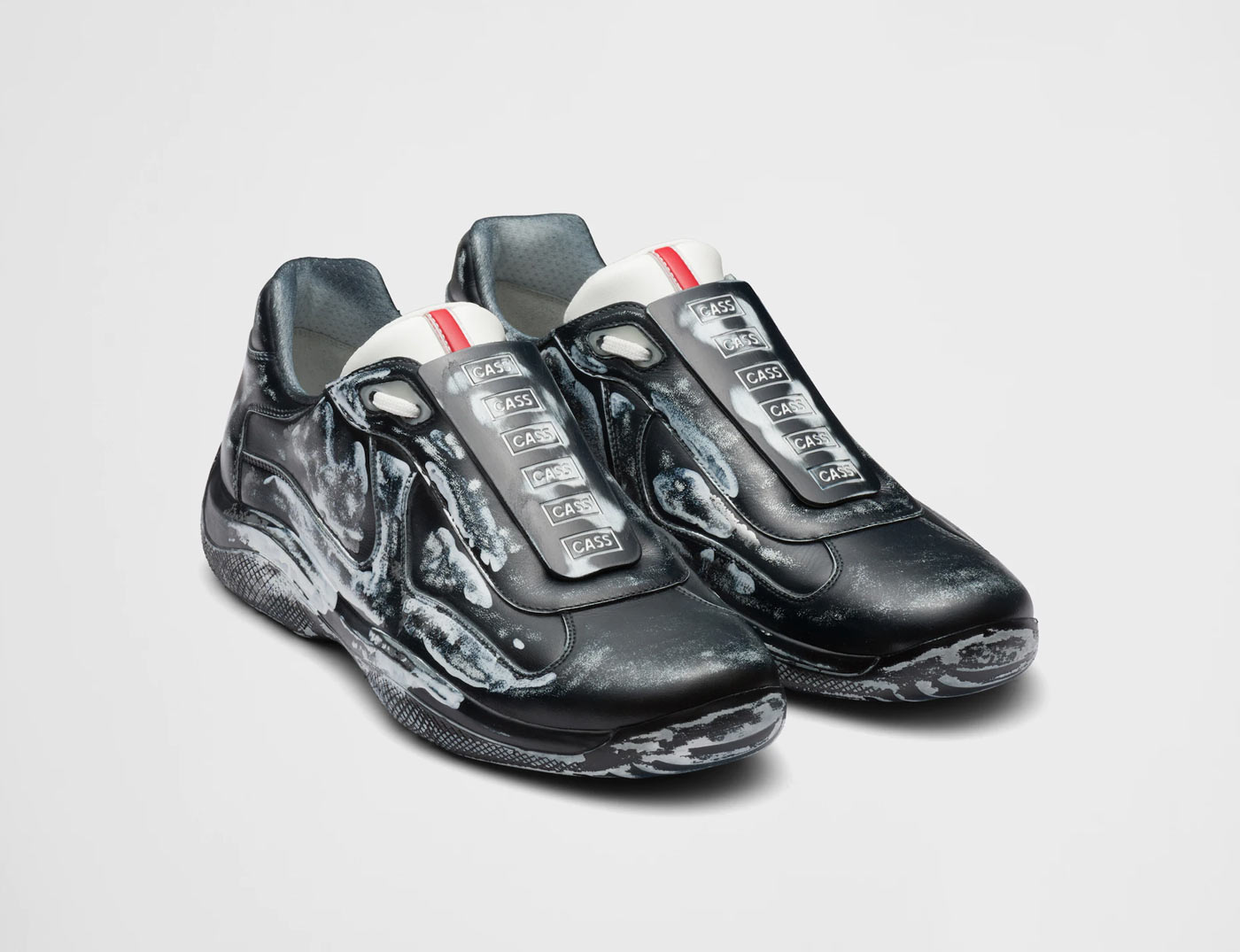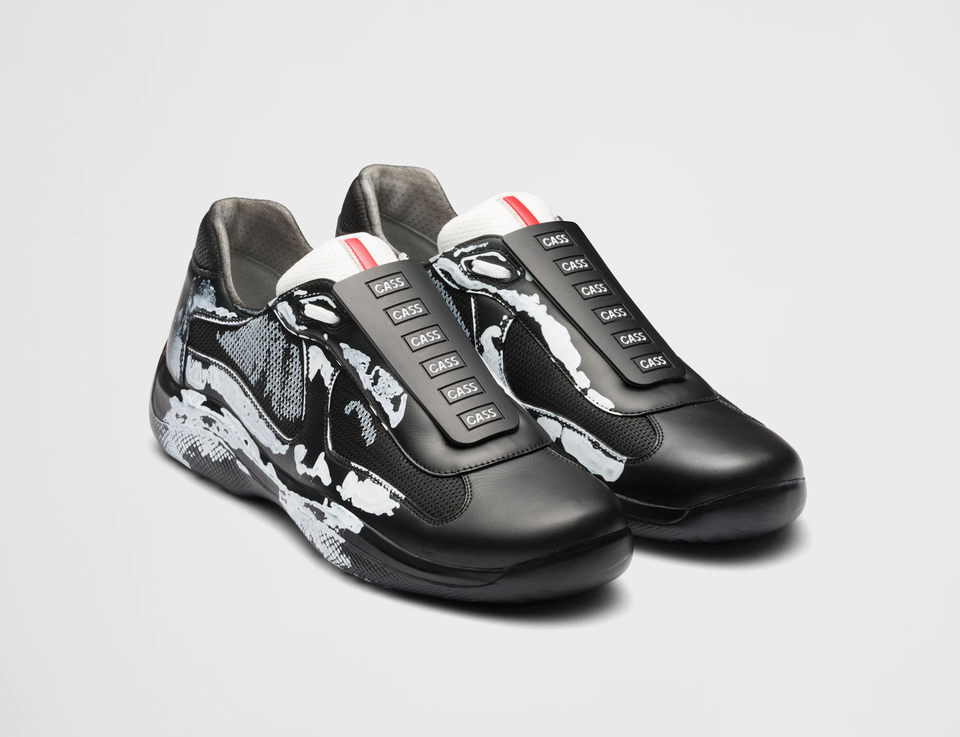 Artist Cassius Hirst reimagined Prada’s America’s Cup sneaker, creating four new styles in 22 variations. Each Cass x Prada sneaker is one-of-a-kind, hand-painted by Hirst – who spray-painted his first pair of sneakers at 14 as gift for his father Damien (yes, that Damien). Limited to 3,000 pairs globally, the Cass x Prada America’s Cup sneaker ($1,790.00) is available exclusively at select Prada boutiques and prada.com.