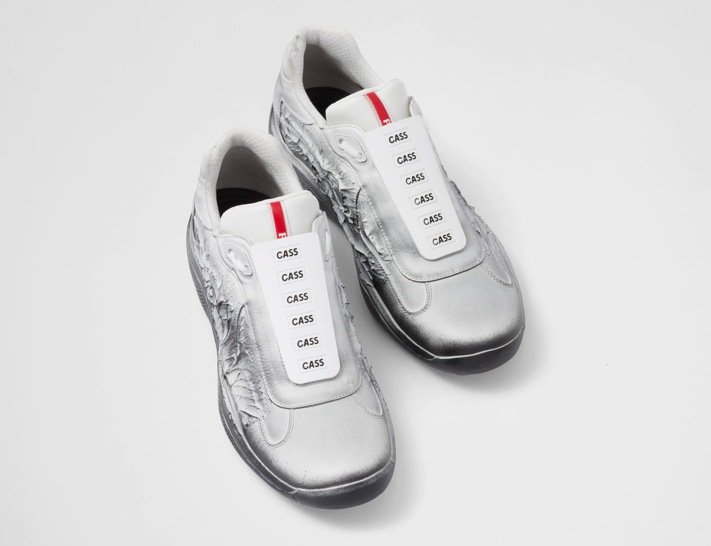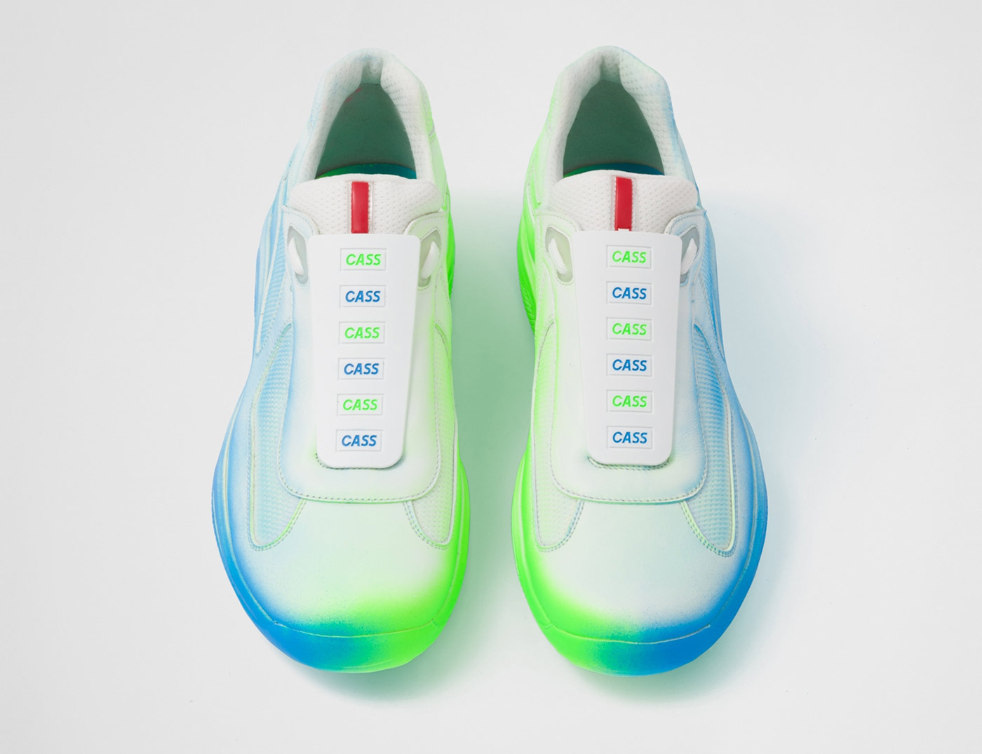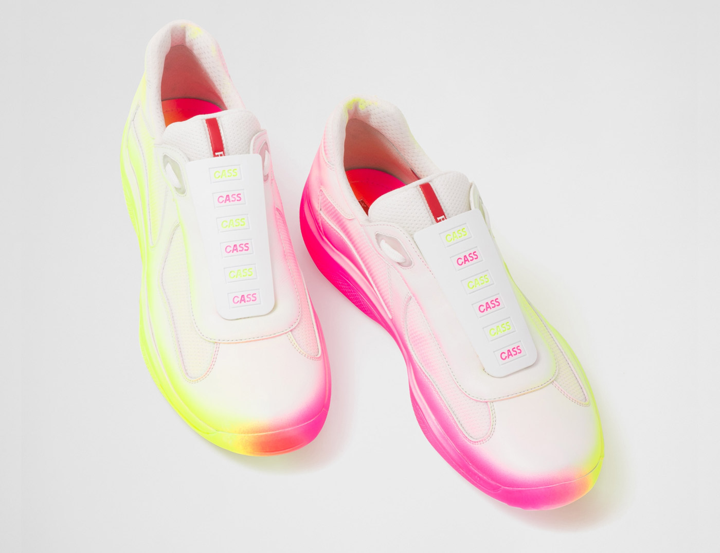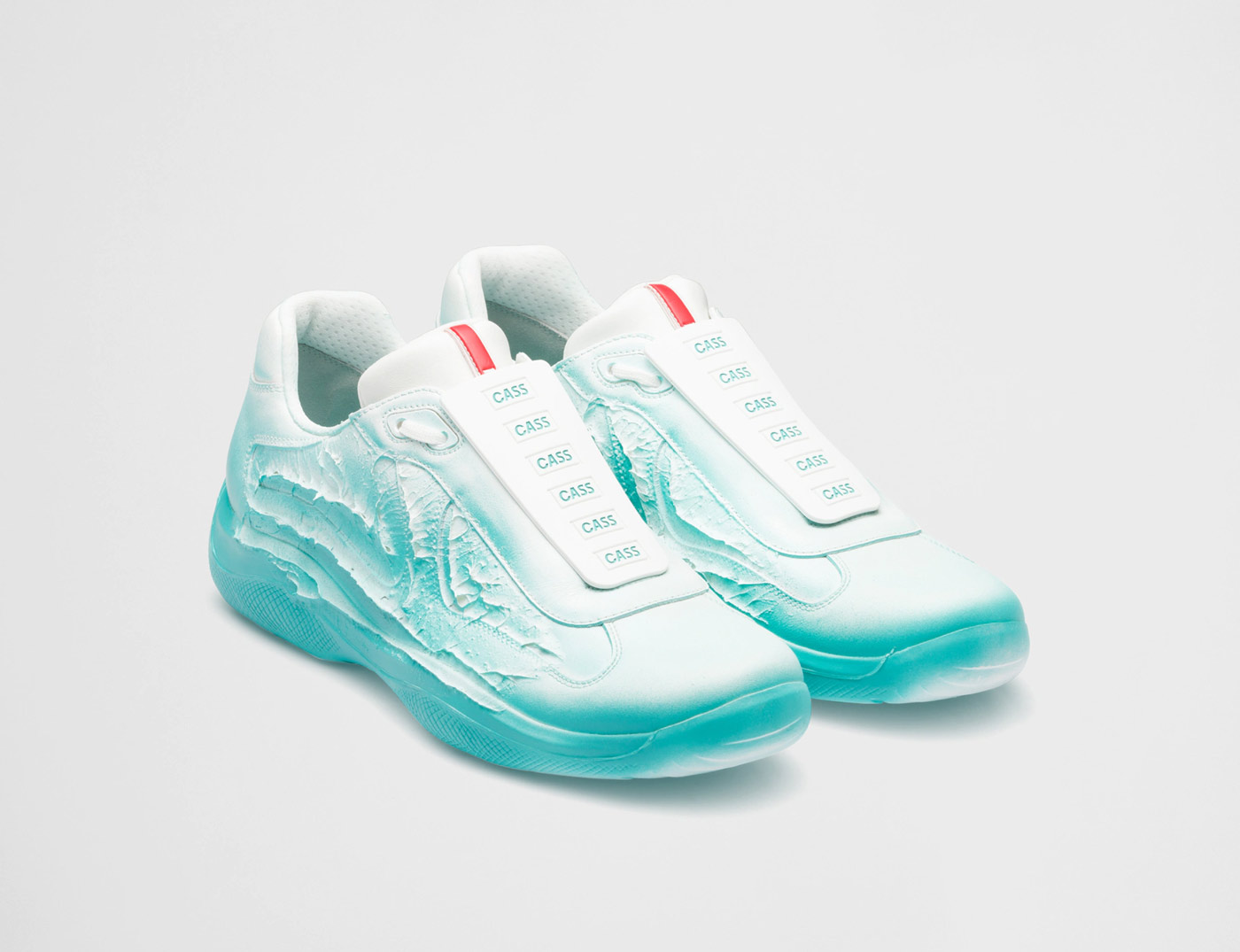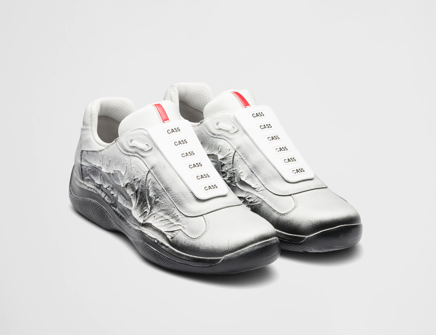 Artist Cassius Hirst reimagined Prada’s America’s Cup sneaker, creating four new styles in 22 variations. Each Cass x Prada sneaker is one-of-a-kind, hand-painted by Hirst – who spray-painted his first pair of sneakers at 14 as gift for his father Damien (yes, that Damien). Limited to 3,000 pairs globally, the Cass x Prada America’s Cup sneaker ($1,790.00) is available exclusively at select Prada boutiques and prada.com.